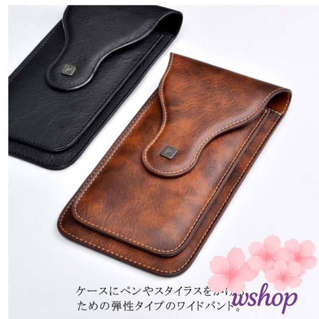 【wshop】スマホホルスター ベルトポーチ スマホケース 6.5インチ メンズ レザー 革 携帯入れポーチ スマホホルスター 2台収納
