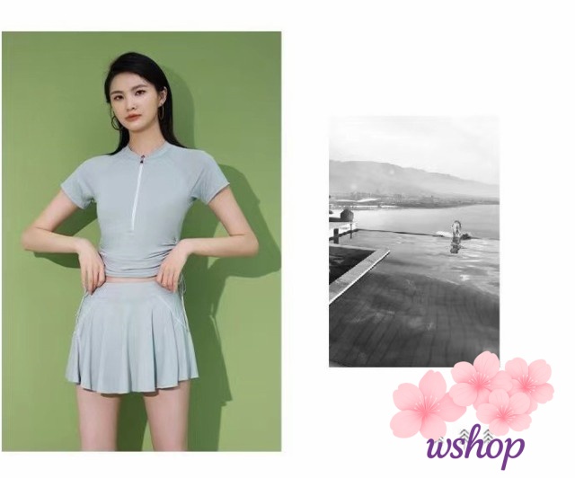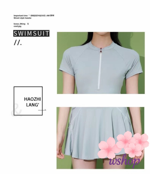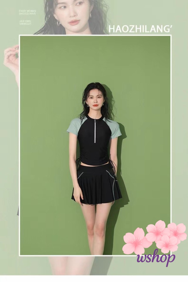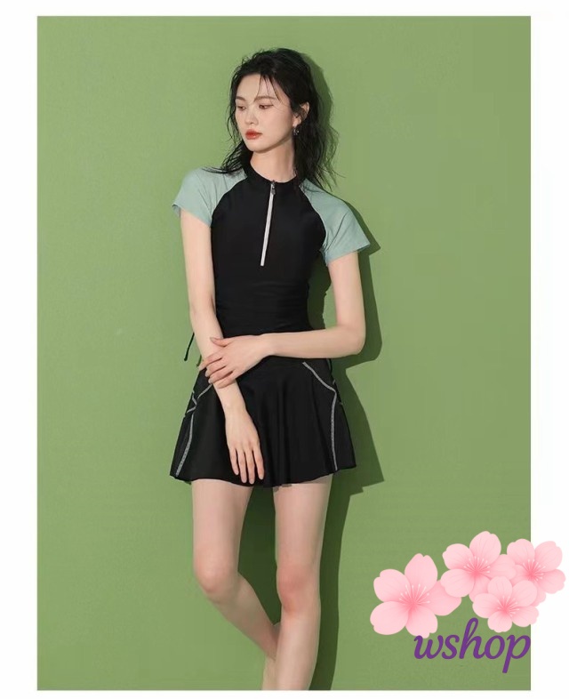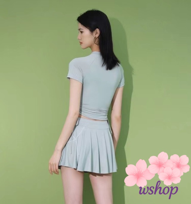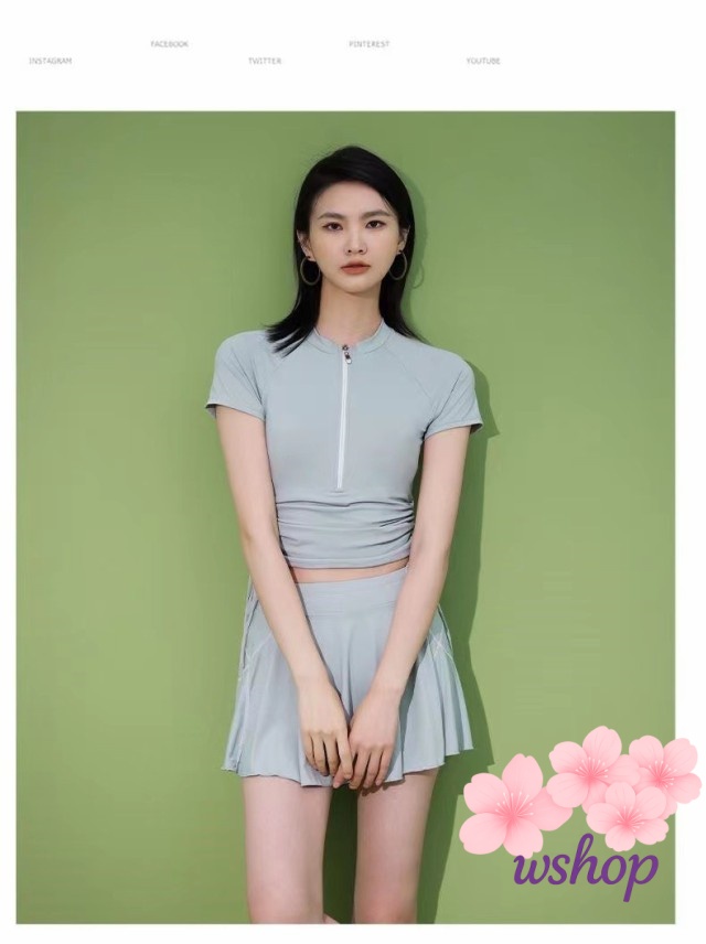 【wshop】2点セット 水着 レディース セパレート 前開き 半袖Tシャツ パッド付き スカート ショートパンツ 中学生 高校生 体型カバー おしゃれ