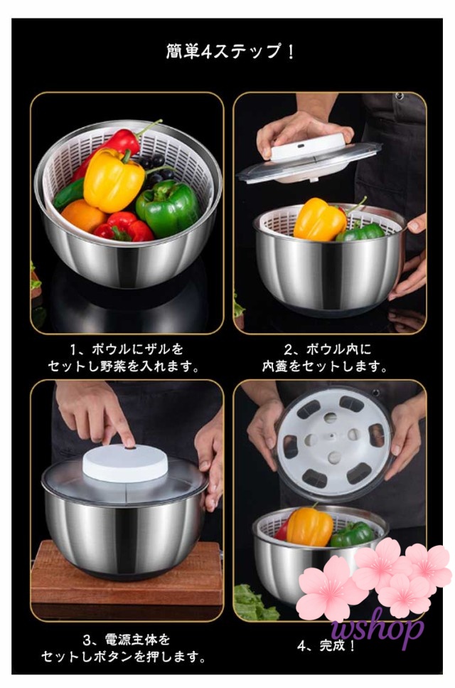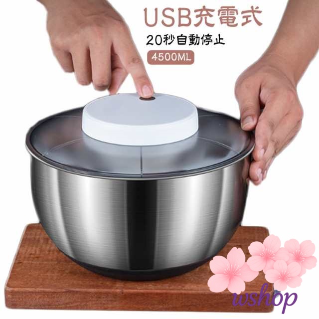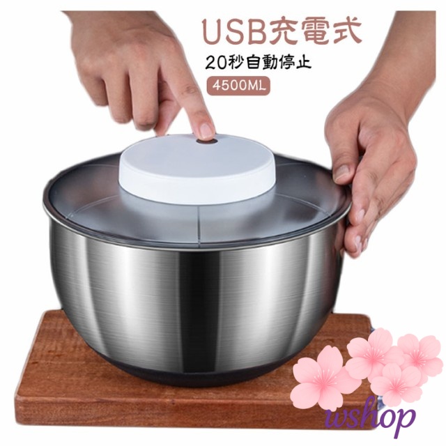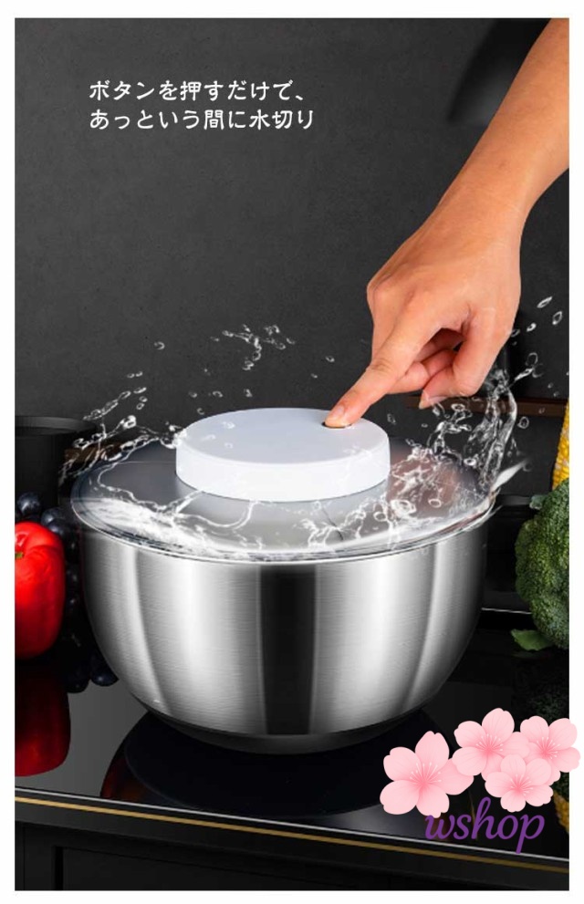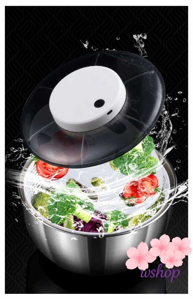 【wshop】サラダスピナー 電動 USB充電式 野菜水切り器 自動 サラダ 野菜 水切り カゴ ザル 水切り器 回転 高速水切り 野菜 果物 キッチンツール 調理器具 キッチンツール キッチン用品 キッチン 籠 かご 保存容器 料理 サラダ 野菜 食材 水洗い バスケット 送料無料