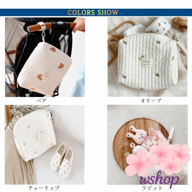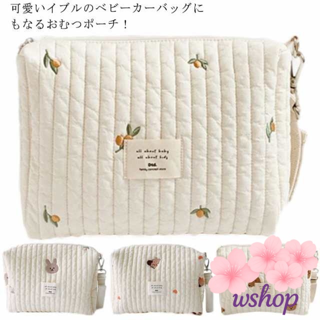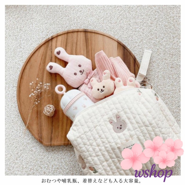 【wshop】チューリップ うさぎ おむつポーチ ポーチ 収納 ヌビバッグ キルティング 韓国 恐竜 送料無料 シンプル キッズ ベビー マタニティ ポーチ 小物入れ チェリー ナチュラル うさぎ おしゃれ 可愛い キルト