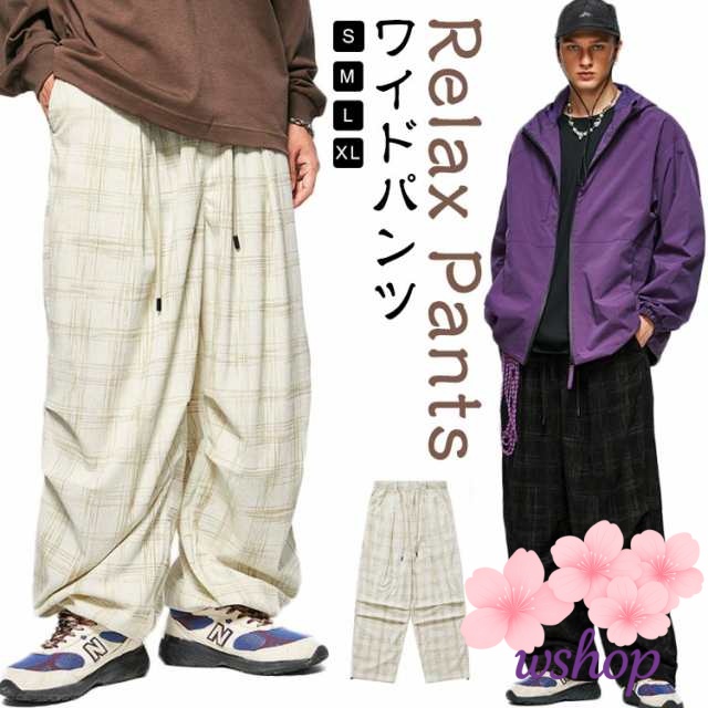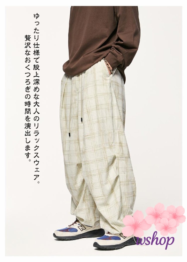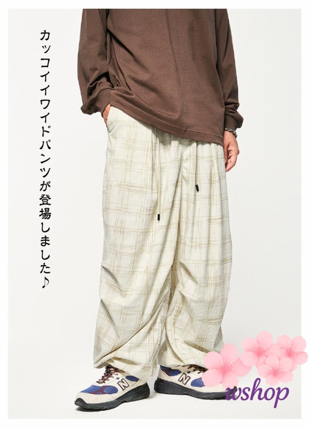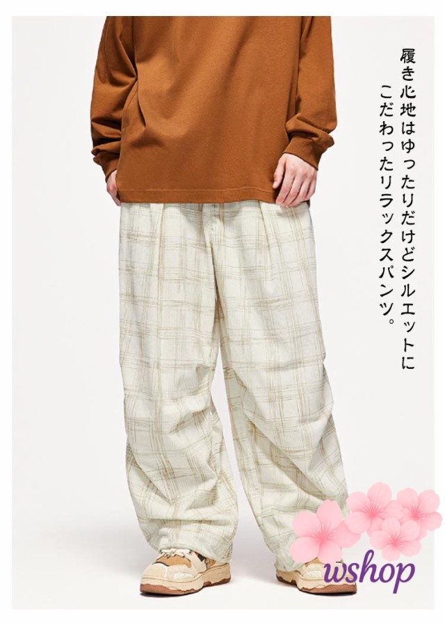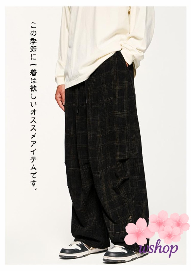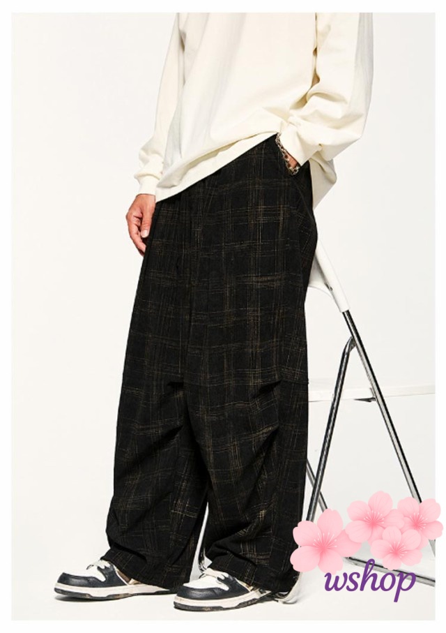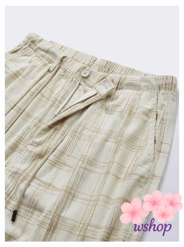 【wshop】チェック柄 コーデュロイ パンツ コーデュロイ ワイドパンツ メンズ イージーパンツ リラックス パンツ ウエストゴム パンツ ストリート系 ストレートパンツ カジュアルパンツ ロングパンツ バギーパンツ アメカジ 彼氏 男性 秋 冬 送料無料