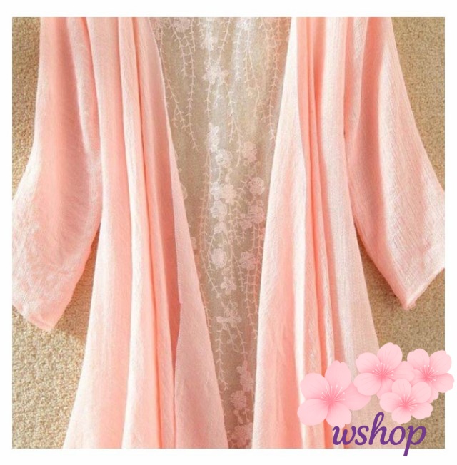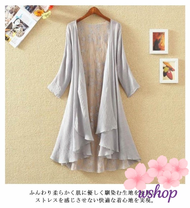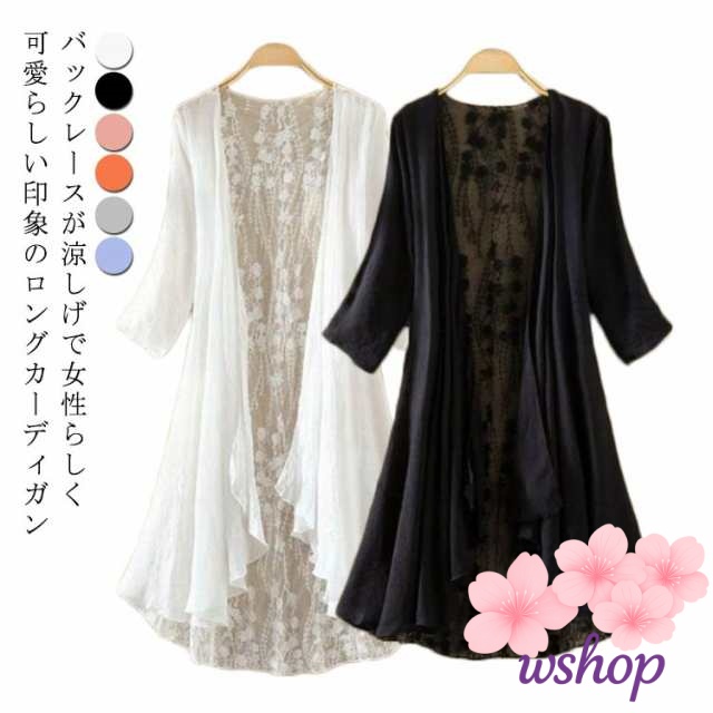 【wshop】バックレース カーディガン 夏 七分袖カーディガン ロング丈 薄手 サマーカーディガン シースルー 透け感 7分袖 レース ガウン 羽織り ロングカーディガン 涼しい 春夏 ひんやり UVカット 紫外線対策 冷房対策 UV対策 大人 女性 部屋着 ギフト 送料無料