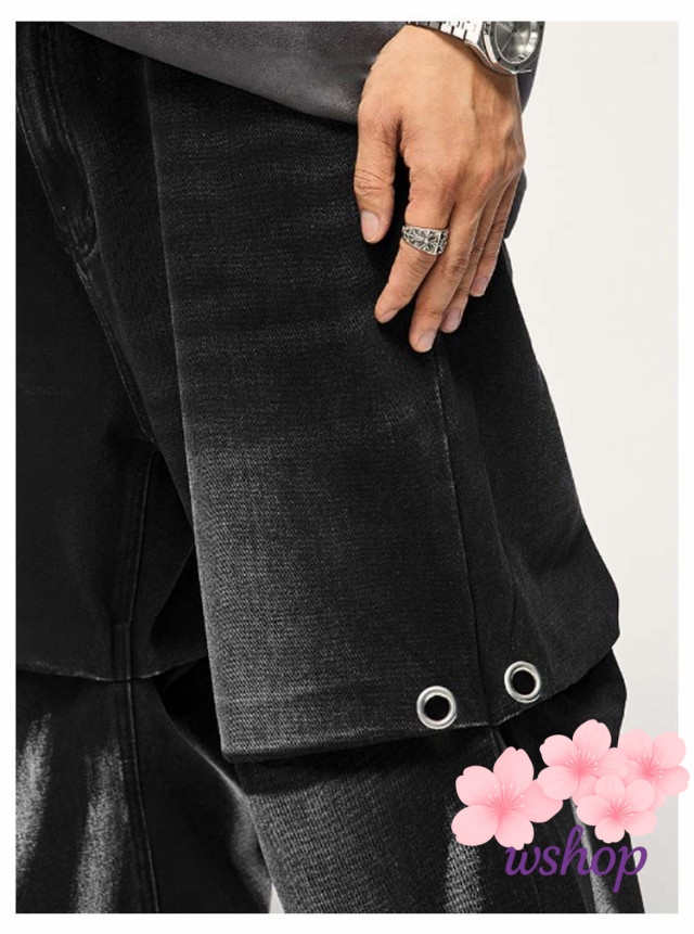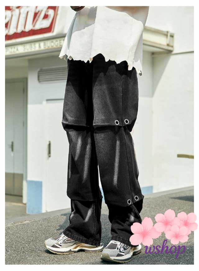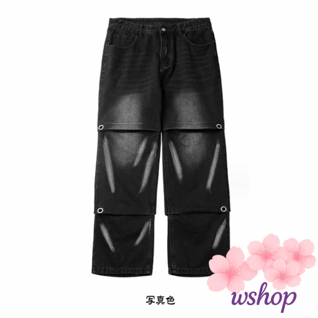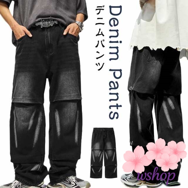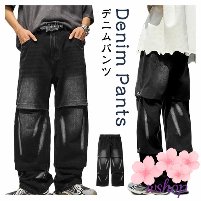 【wshop】ウォッシュ加工 デニムパンツ デニム ワイドパンツ ロング パンツ ダメージ加工 ストレート ワイド デニムパンツ メンズ ジーンズ デニム ストレートパンツ ストレート ジーンズ ゆったり イージーパンツ リラックス パンツ ストリート系 ダンス衣装 春 秋 冬 送料無
