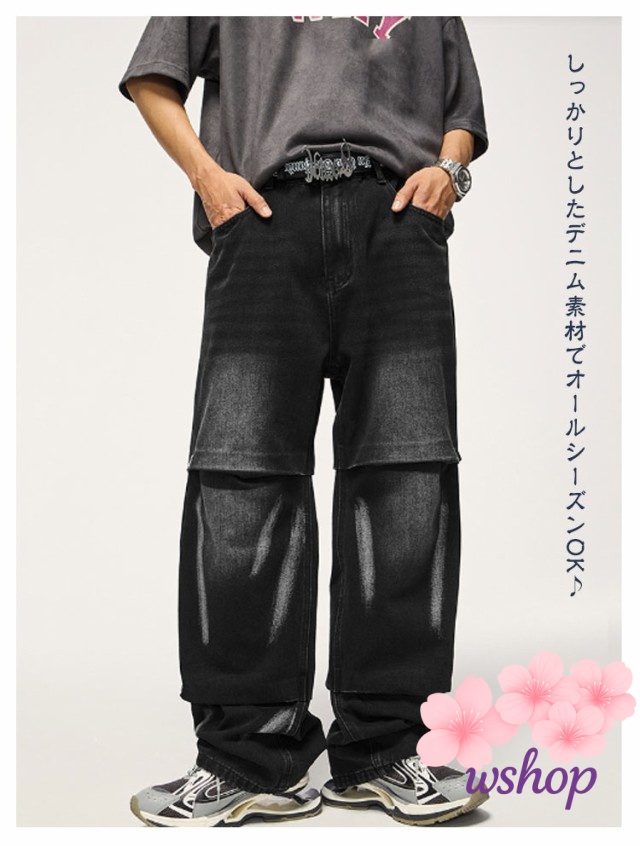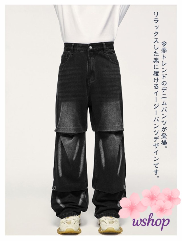 軽量仕様 レビュー高評価 送料無 ダメージ加工 ロング ジーンズ リラックス 【wshop】ウォッシュ加工 春 パンツ ストレートパンツ 冬 ゆったり デニム ワイドパンツ ストリート系 デニムパンツ イージーパンツ ストレート 秋 ワイド メンズ ダンス衣装 在庫わずか