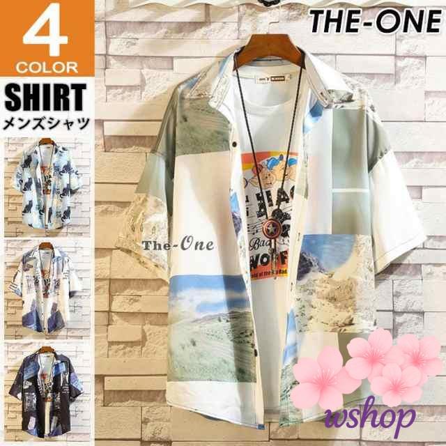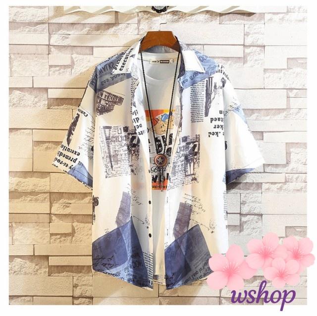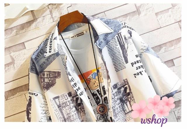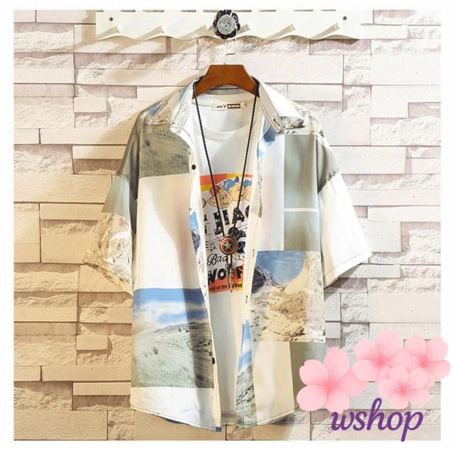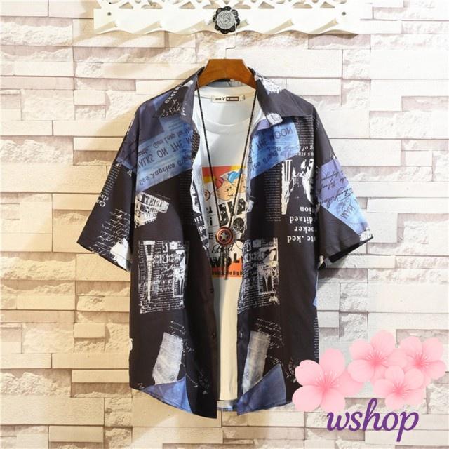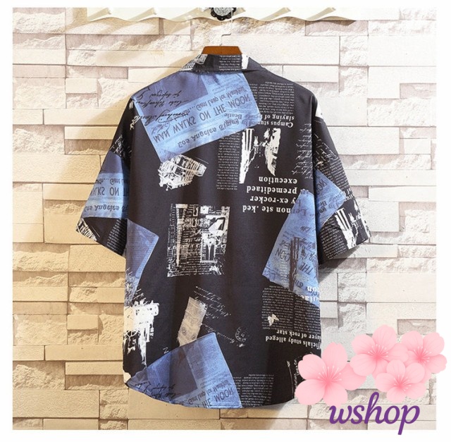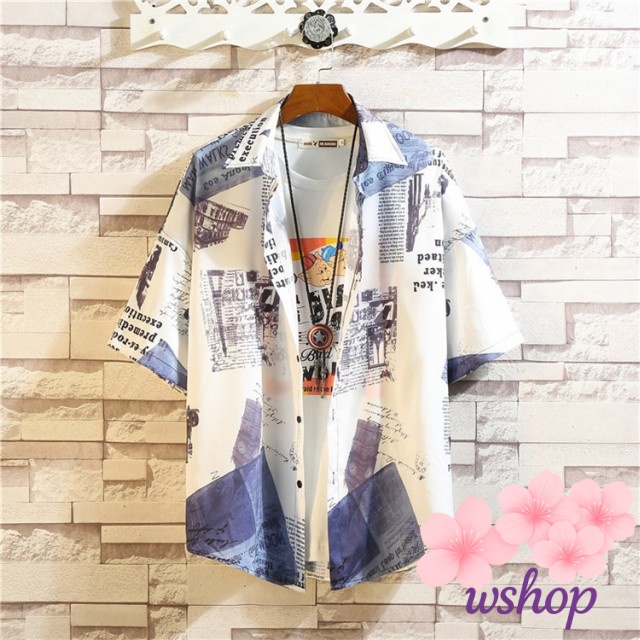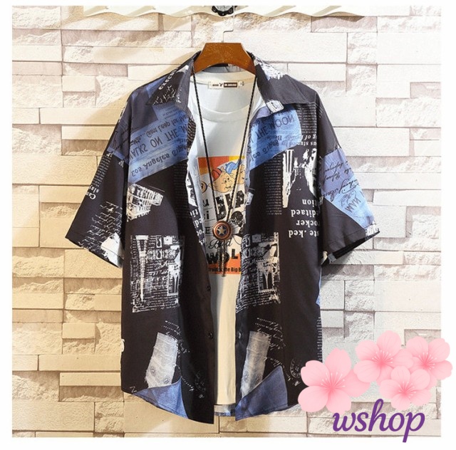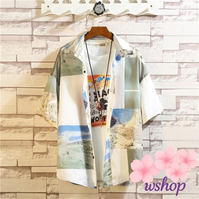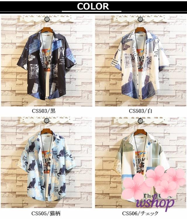 【wshop】半袖シャツ メンズ カジュアルシャツ 半袖 総柄 猫柄 チェック おしゃれ 夏服 トップス 20代30代40代
