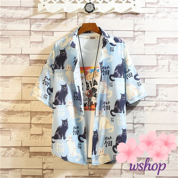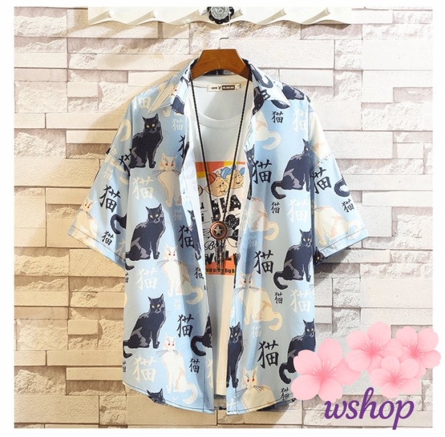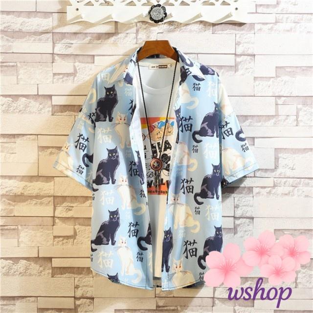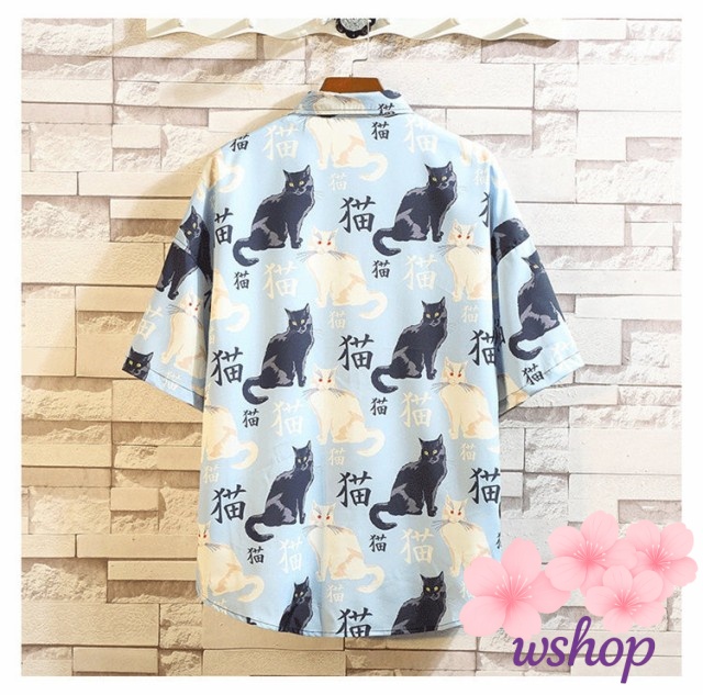 季節限定アイテム ギフトにも最適 売上急増中 20代30代40代 カジュアルシャツ 総柄 トップス 今だけ チェック 話題商品 【wshop】半袖シャツ おしゃれ 猫柄 夏服 半袖 メンズ お買い得プライス