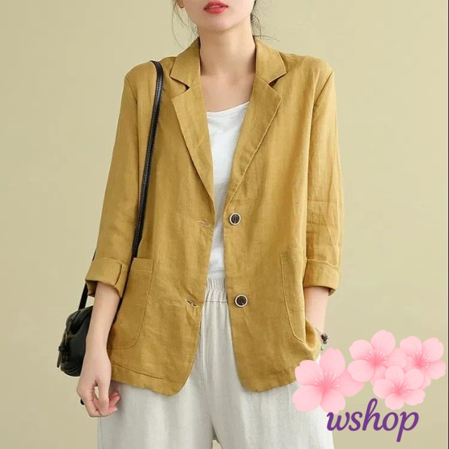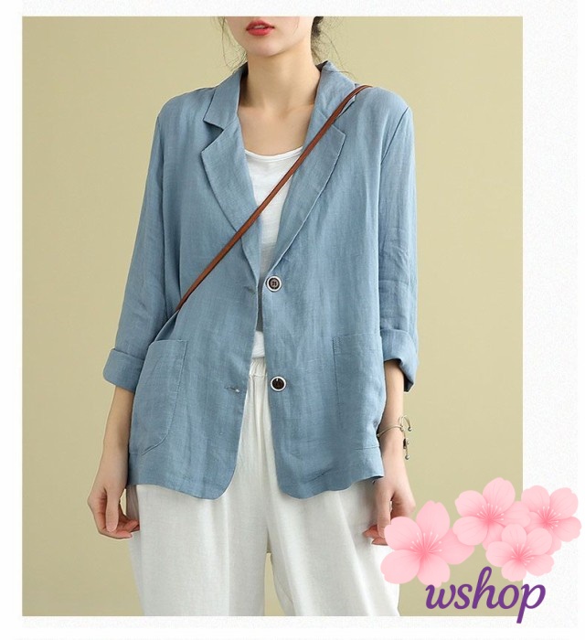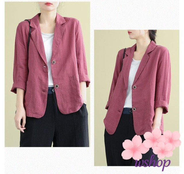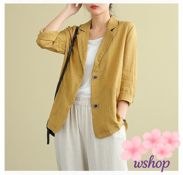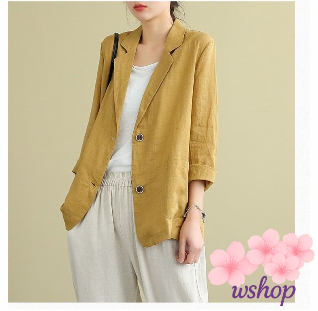 家中時間充実化 品質安心 ジャケット チュニック丈 テーラードジャケット 人気急上昇 レディース リネンジャケット 【wshop】サマージャケット 上品 七分袖 綿麻混 春夏 サマー アウター ランキング常連 在庫わずか お買い得プライス