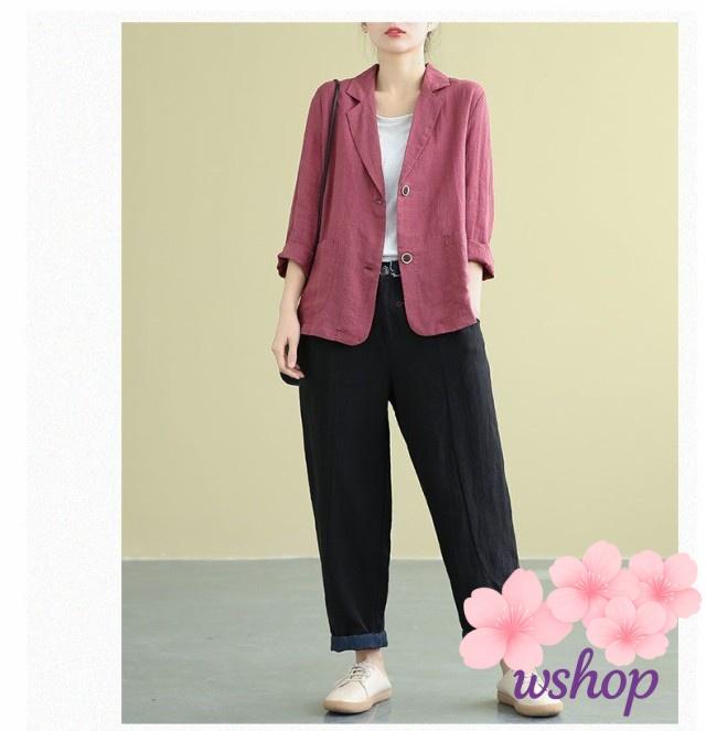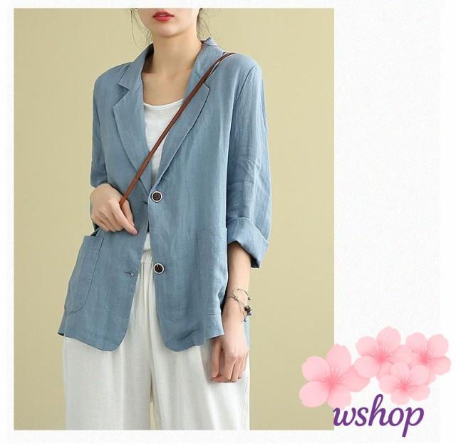 【wshop】サマージャケット レディース リネンジャケット テーラードジャケット 七分袖 チュニック丈 綿麻混 アウター ジャケット 上品 春夏 サマー ジャケット
