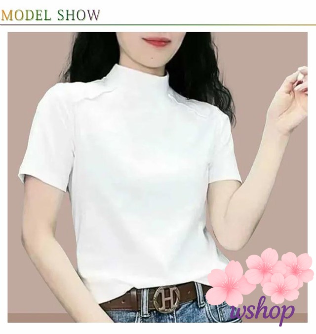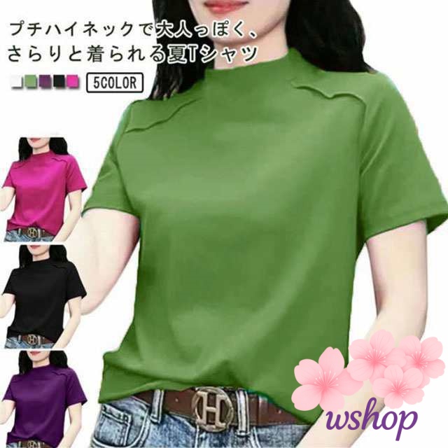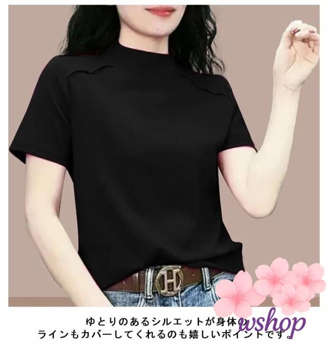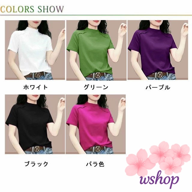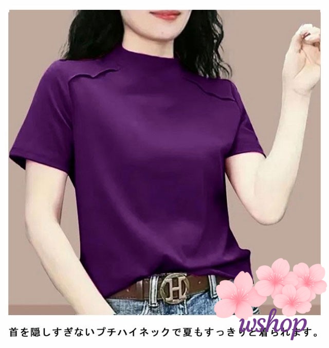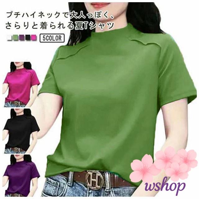 【wshop】トップス Tシャツ カットソー 半袖 プチハイネック UVカット レディース 薄手 夏服 夏 ハイネック モックネック tシャツ ストレッチ 半袖tシャツ ゆったり 体型カバー 消臭 抗菌 吸汗 速乾 ブラウス 半袖ブラウス カジュアル 無地 シンプル 大人 おしゃれ 送料無料
