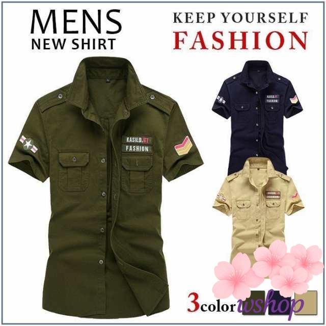 【wshop】シャツ ミリタリー 半袖シャツ ワークシャツ シャツ メンズ ミリタリー 半袖 カジュアルシャツ アーミーシャツ コットン