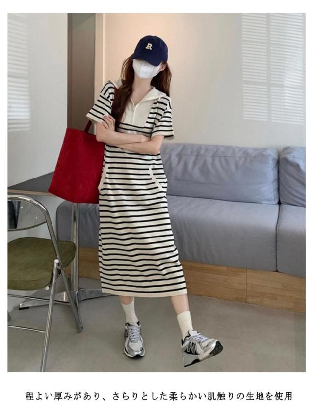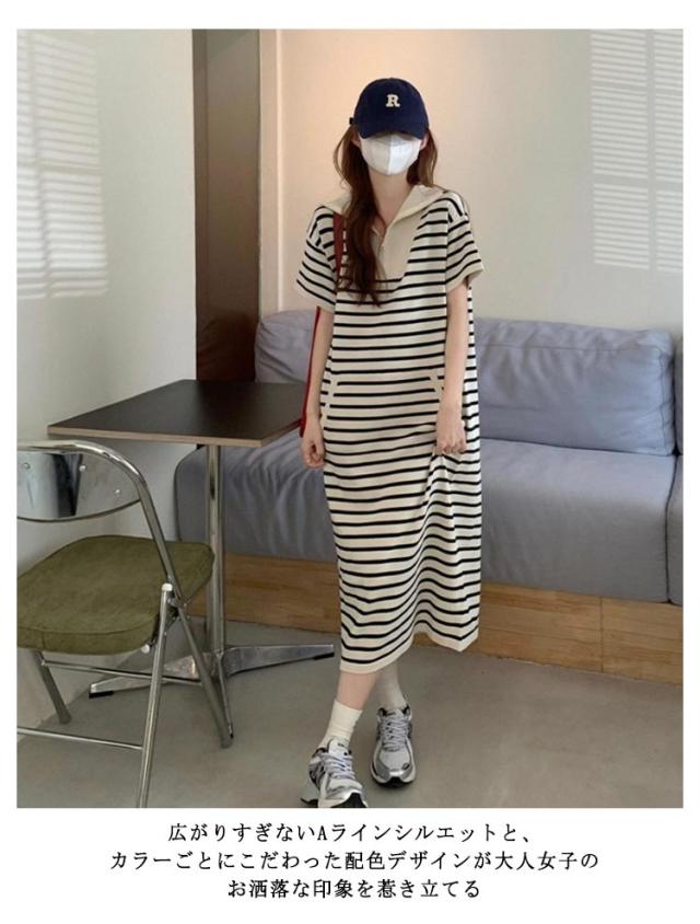 ポロシャツワンピース ロング 半袖 ポロシャツ ワンピース 襟付き お洒落 ロング レディース 大きいサイズ ゴルフウェア ポロ襟 春夏 ポロワンピース ボーダー柄 ポロシャツワンピース カットソー Aライン カジュアル