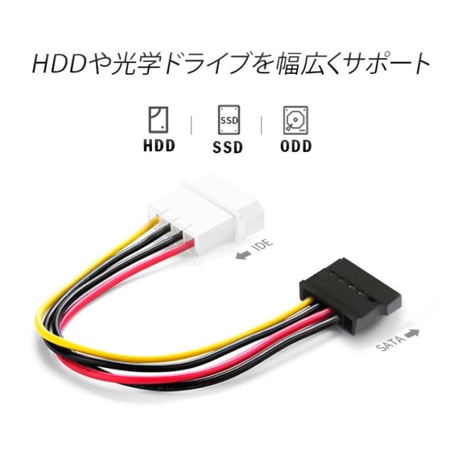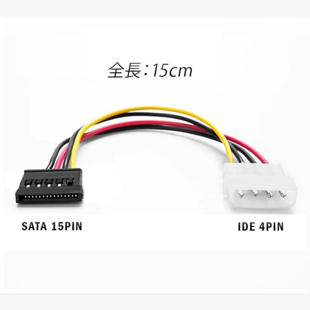 シリアルATA電源コネクタ(15ピン)に変換できる15cmケーブルです。