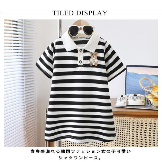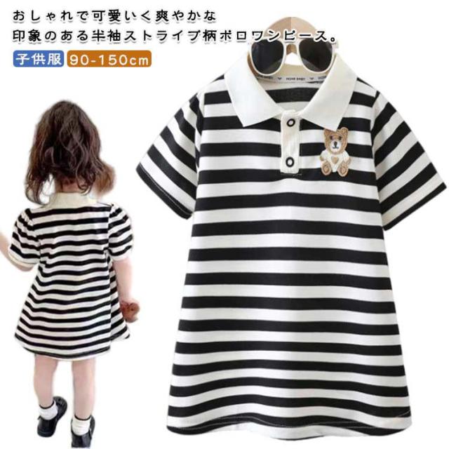 かわいい ニットワンピース キッズ ワンピース 子供服 ベビー服 ストライプ柄 幼稚園 ポロ 女の子 ジュニア おしゃれ 半袖ワンピース 結婚式 入園 保育園 110 誕生日 プレゼント お姫様 90 100 ワンピース 120 130 140 150