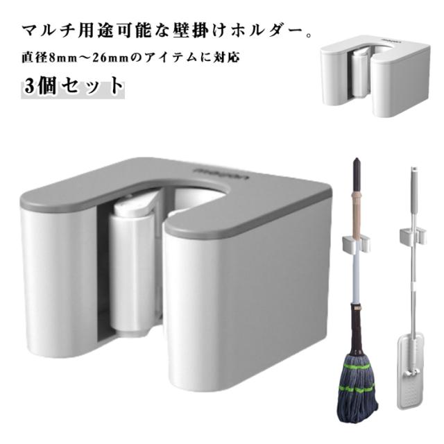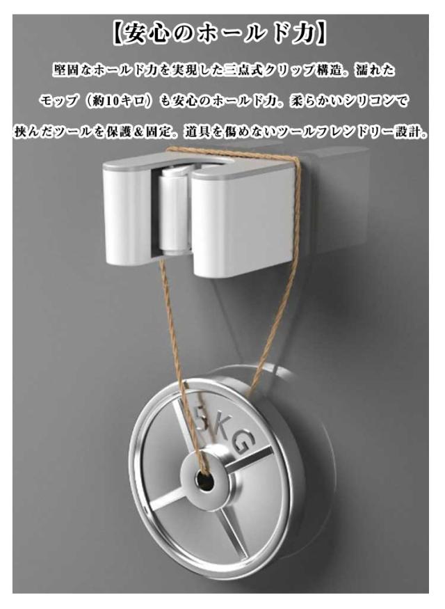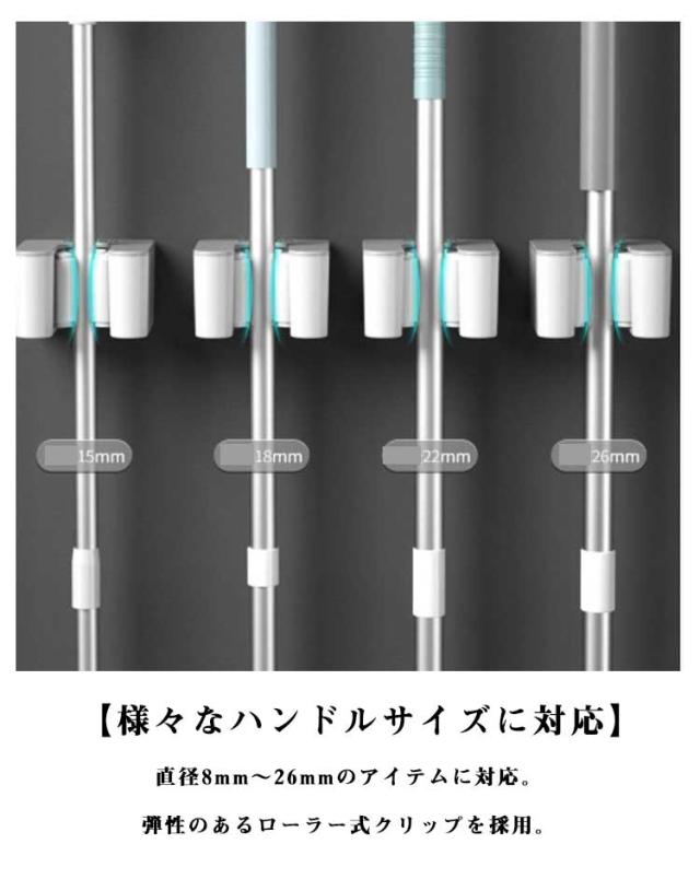 | マルチ用途可能な壁掛けホルダー。【直径8mm〜26mmのアイテムに対応】【3個セット】 【マルチ用途可能なコンパクトホルダー】浴室、トイレなど場所を選ばず活躍。ベランダにも最適。すっきり収納、しっかり固定。ツールが多いキッチンもOK。幅広いアイテムに使用可能。 【様々なハンドルサイズに対応】直径8mm〜26mmのアイテムに対応。弾性のあるローラー式クリップを採用。 【安心のホールド力】堅固なホールド力を実現した三点式クリップ構造。濡れたモップ(約10キロ)も安心のホールド力。柔らかいシリコンで挟んだツールを保護&固定。道具を傷めないツールフレンドリー設計。 【実用的なデザイン】片手でキャッチ片手でリリース、時間短縮型フォルム。すっきり整理&収納で掃除用具の散乱を解決。 【屋外でも使える防水タイプ】雨がかかる場所でも安心の防水仕様。湿気がたまりにくい、すぐれた防湿性。 【穴あけ不要の壁掛けタイプ】粘着テープ使用でぴったり吸着。壁に跡が残らない穴あけ不要タイプ。 【使用方法】壁を綺麗に拭いて粘着シールの保護シールをはがして壁に貼り付けます。本体を粘着シールに固定します。(上から下へ差し込む) | |