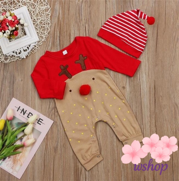 【wshop】クリスマス コスプレ衣装 トナカイ 着ぐるみ ベビー服 ロンパース 子供用 サンタ服 コスチューム 仮装 男の子 女の子 カパーオール DM便