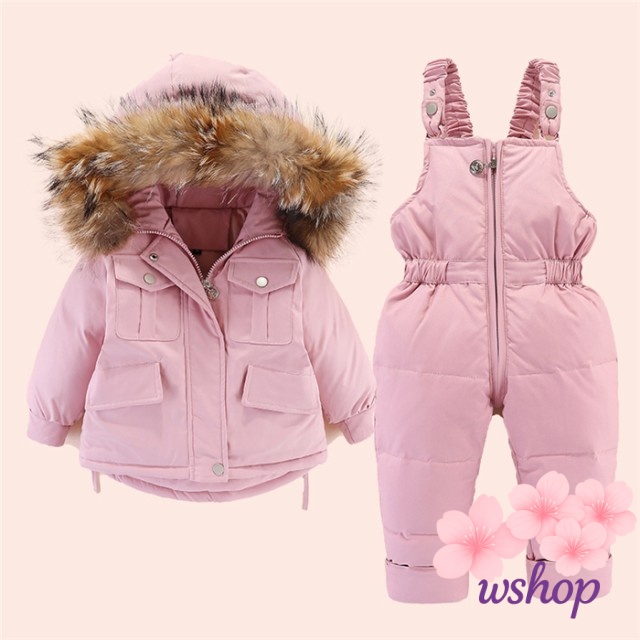 【wshop】キッズ ダウンコート ダウンジャケット 女の子 男の子 アウター 子供コート フード付き 子供服 子ども服 ジャケット2点セット 中綿 オーバー コート