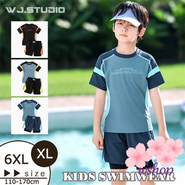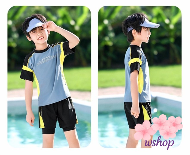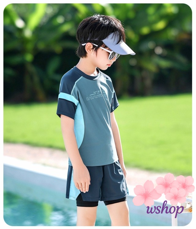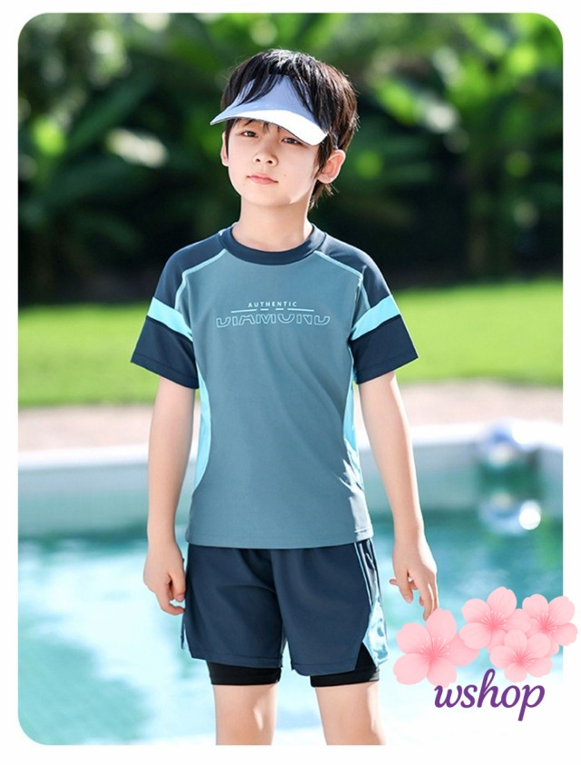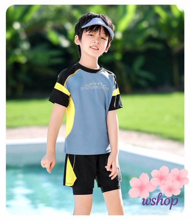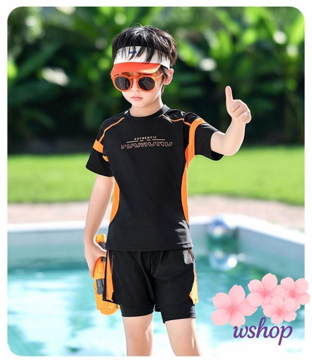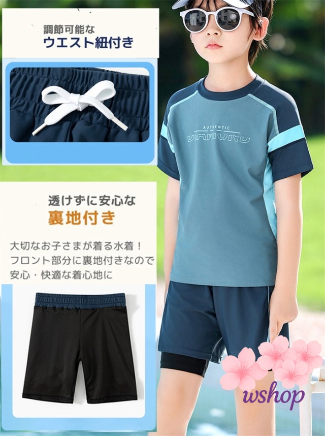 【wshop】【品質保証】水着 ラッシュガード 男の子 水着 キッズ 水着 紫外線防止 子供 セパレート水着 子ども水着 大きいサイズ キッズ 水着 ボーイ ショートパンツ トップス スクール水着 スポーツスイムウェア ジュニア 小中学生 スイミング プール 100 110 120 130 140 150