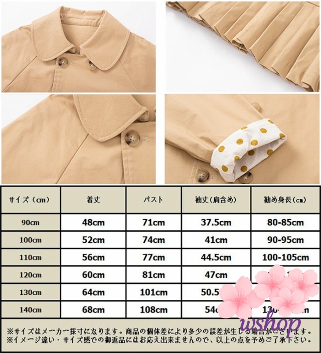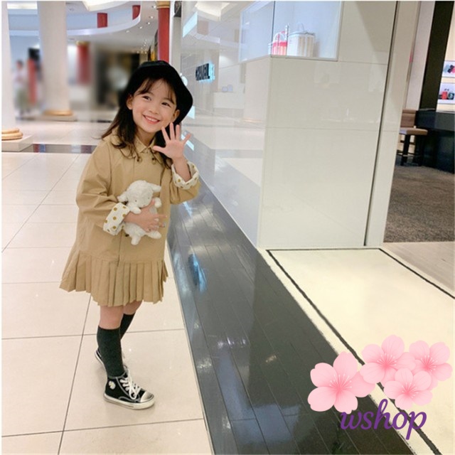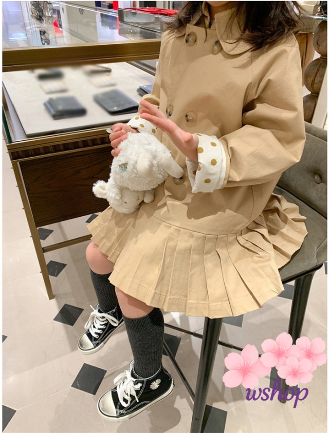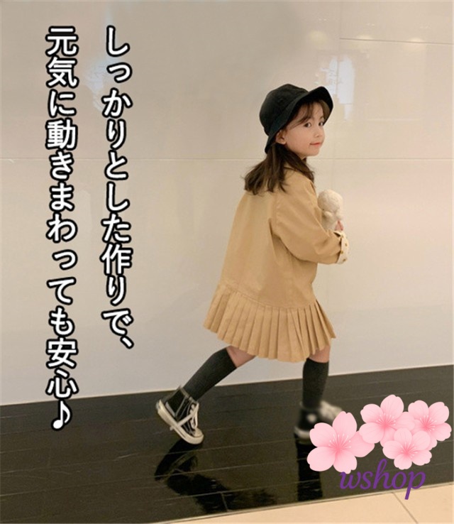 【wshop】オシャレ トレンチコート キッズ キッズコート 子供服 女の子 キッズ コート スプリングコート アウター 長袖 ガールズ ジュニア ベビー服 服 秋服 90cm-140cm