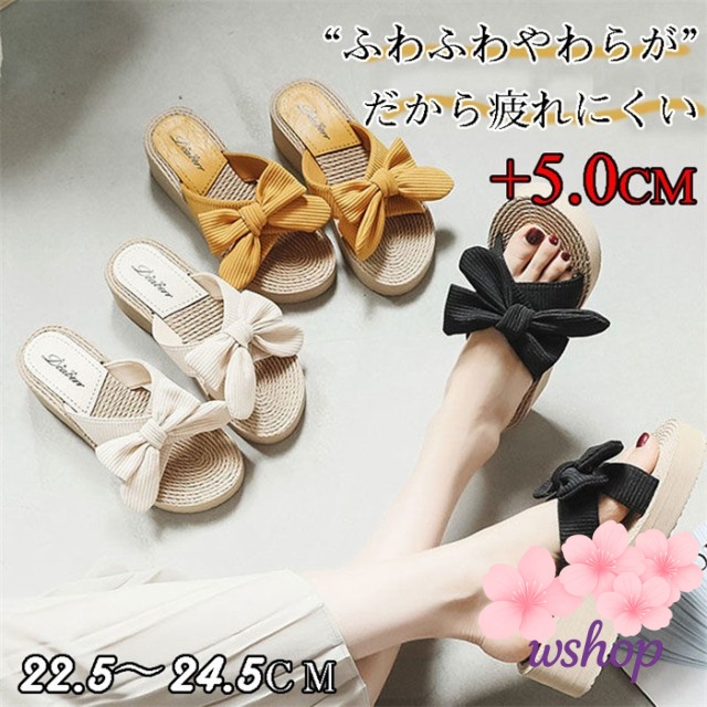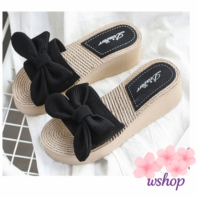 【wshop】スリッパ ヒール 厚底 おしゃれ 室内 室内履き 学校 携帯 授業参観 入学式 卒業式 ビーチサンダル オフィス 黒 リボン 美脚 ルームシューズ ヒールスリッパ レディース ブラック サンダル 夏用 歩きやすい 軽量 文化祭 発表会