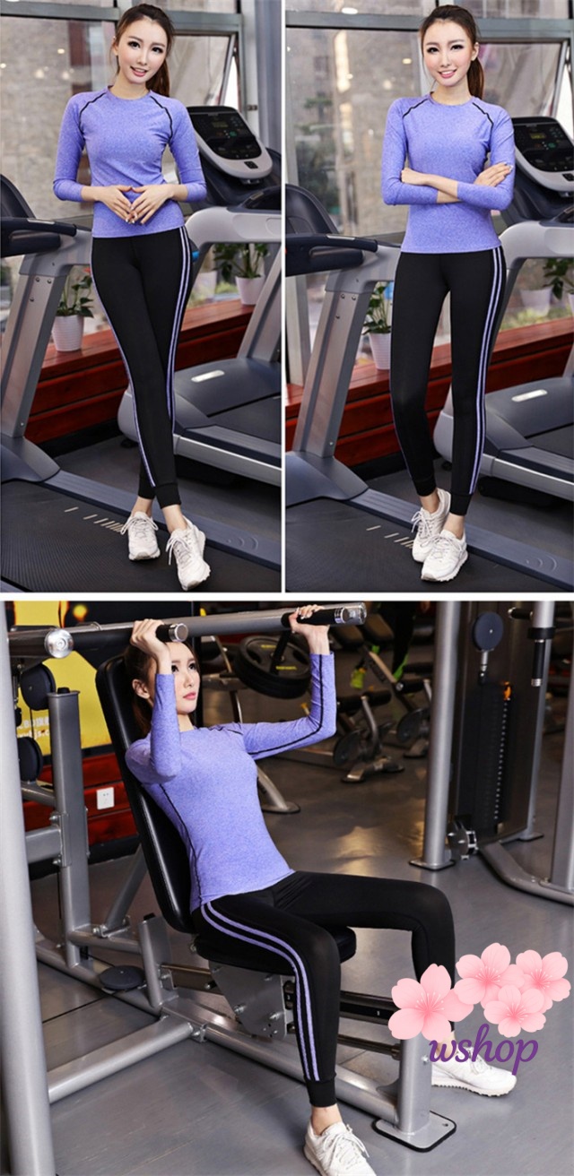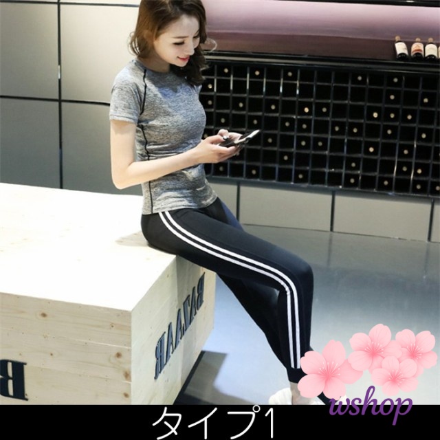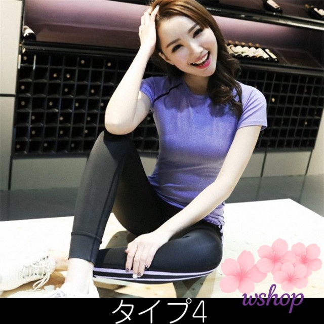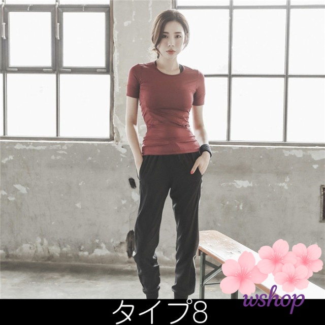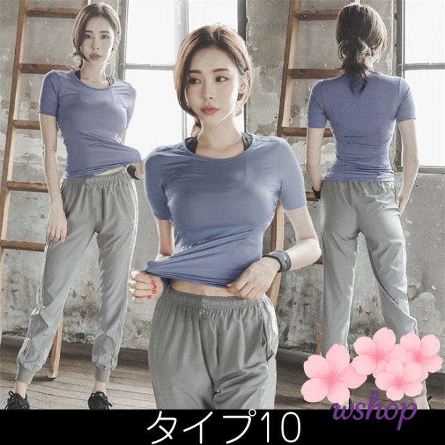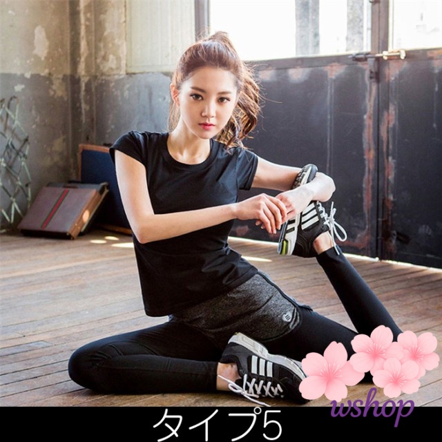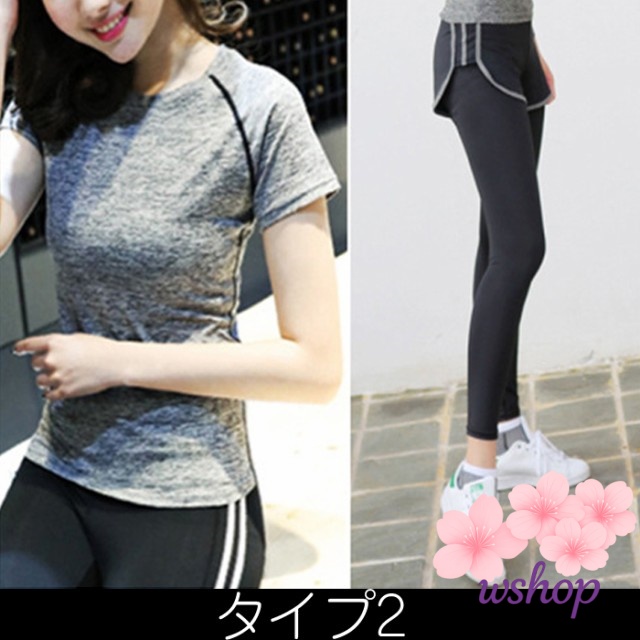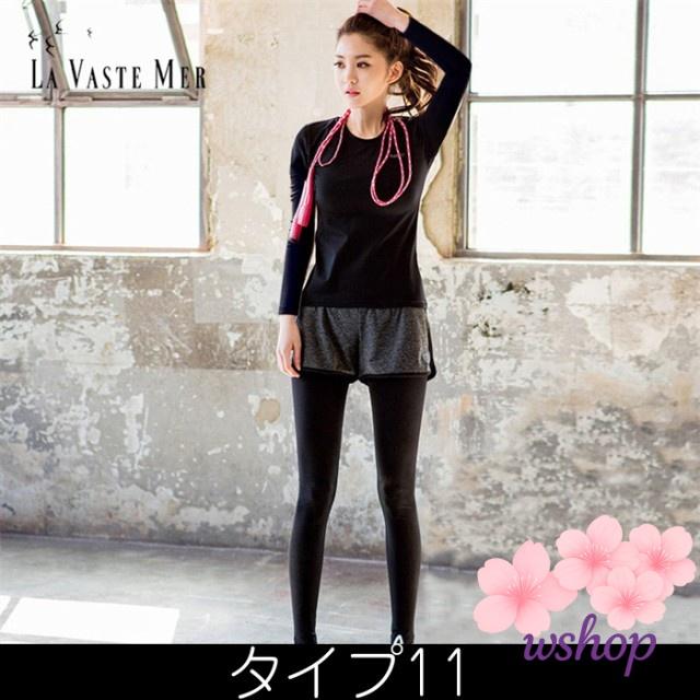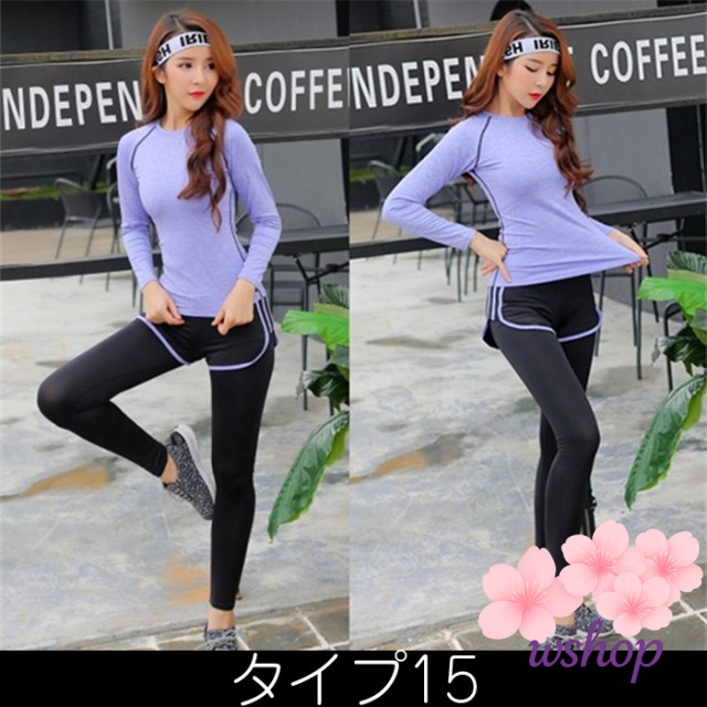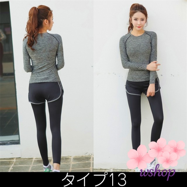 【wshop】ヨガウェア 2点セット スポーツウェア レディース 長袖Tシャツ パンツ レギンス パンツ一体型 大きいサイズ ランニング スイムウェア