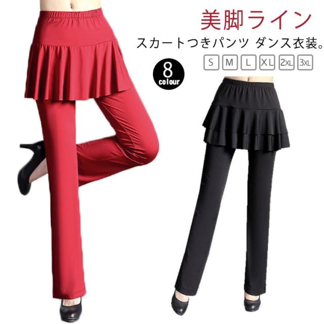 ダンスパンツ ミニスカート ダンス衣装 社交ダンス ダンスパンツ スカート付き ベリーダンス ジャージ ダンスパンツ 美脚パンツ ブーツカット レディース フィットネス フラメンコ パンツ ヨガ 体型カバー 衣装 ヨガウェア ヨガパンツ レッスンパンツ レギンス