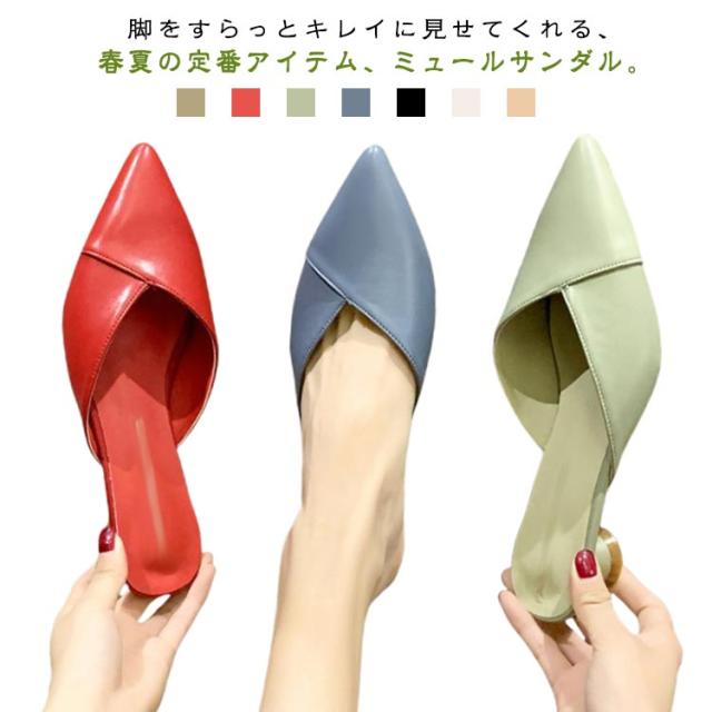 ローヒール 疲れにくい 痛くない サンダル ポインテッドトゥミュール ミュール 走れる 太ヒール 脱げない 靴 美脚 ミュール レディース シンプル 履き心地 美脚 春夏秋 シューズ スリッパシューズ