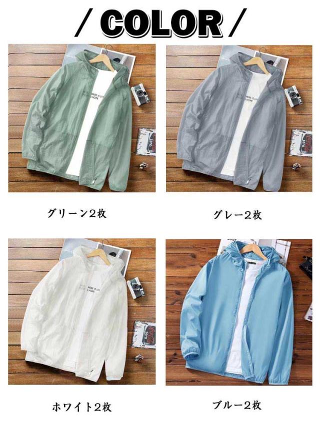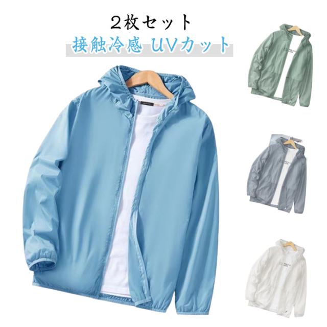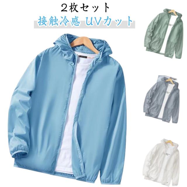 ラッシュパーカー 男女兼用 ジップパーカー メンズ UVカットパーカー 薄手 接触冷感 UVカットパーカー ライトアウター 長袖 【2枚セット】フード付き 軽量 日焼け止め 冷房対策 【2枚セット】フード付き 夏パーカー 涼しい 吸水速乾 サマーパーカー