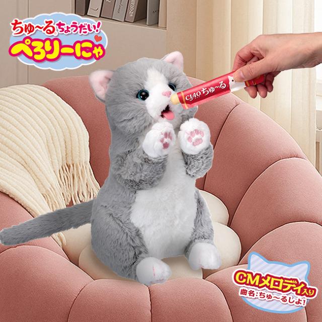 「ちゅ〜るちょうだい!」の名シーンを再現できる、ねこ型ぬいぐるみ『ぺろりーにゃ』が登場!