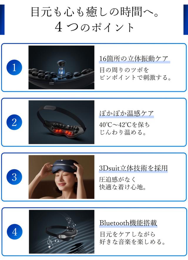 ●目を閉じたまま操作ができる音声操作機能を搭載