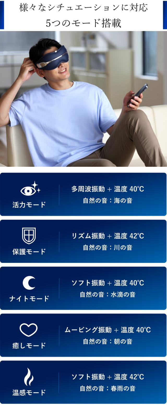 ●ボタンをタッチするだけの簡単操作 ボタンをタッチするだけの簡単操作なので、使用中もモードの切り替えなどの操作がしやすく、 快適にご使用いただけます。 ●目を閉じたまま操作ができる音声操作機能を搭載 音声操作機能を搭載しているので、ボタンで設定後に目を閉じたまま操作することができます。 手を動かす必要がないので、リラックスした体勢のまま操作いただけます。 ●最大90分使用可能の1200mAh大容量バッテリー搭載 1200mAh大容量バッテリーを搭載しており、フル充電から最大6回まで使用可能です。 (ケア1回:平均15分、最大90分)1日1回のケアの場合、6日間連続でご使用いただけます。 ●便利なコードレス・Type-C充電設計 コードレスなので外出先や移動中でも持ち運んでご使用いただけます。 充電はType-C設計の為、パソコンや様々な電子機器と互換性があり、あらゆる機器から充電できます。 ■サイズ:298×93×75mm ■重量:約220g ■素材:ABS樹脂、レザー、シリコン ■バッテリー容量:1200mAh ■連続使用時間:90±5分 ■タイマー:15分 (15分以内で無操作の場合は自動停止) ■充電時間:約3時間 ■仕事電圧:3.7V ■消費電力:4W ■充電電圧:5V ■充電電流:550mA ■カラー:ダークブルー ■メーカー型番:PPM2321 ■メーカー:PHILIPS 【2507r】 |