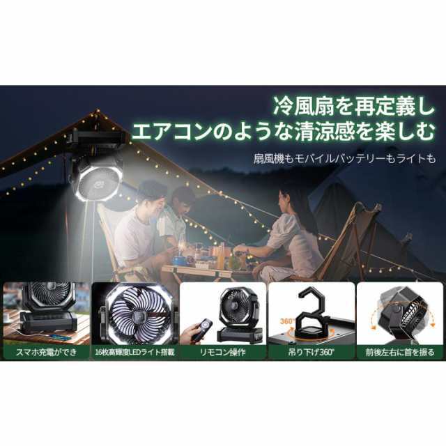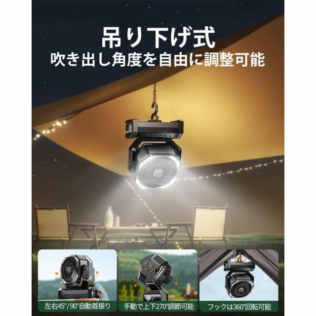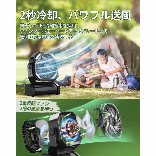 キャンプ 扇風機 最大60時間連続使用 吊り下げ 二重反転ファン 小型 防災 キャンプ用品 テントマット 車中泊 コンパクト 持ち運び便利