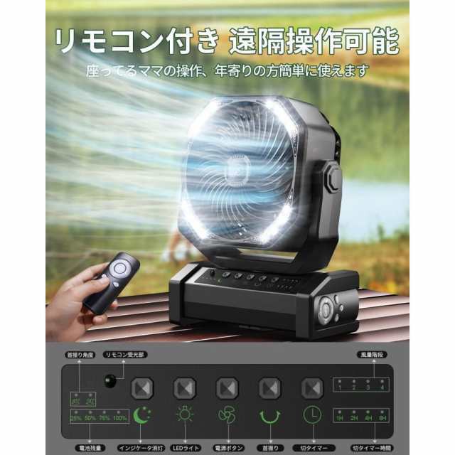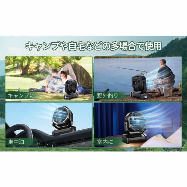 【頑丈な材質・切タイマー機能】このキャンプ 扇風機は頑丈で耐久性のある構造を採用し、落下や衝突を防ぐことができ、頑丈な台座は強力な安定性を提供し、サーキュレーターをしっかり固定させる。この扇風機はキャンプ、ピクニック、釣り、ボートなどのアウトドア扇風機に最適です。