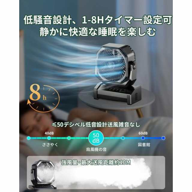 【静音・便利なリモコン付き】このキャンプ 扇風機は、最も低い ノイズ (<50db) で動作し、寝室、寮の部屋、オフィスなどの卓上扇風機として最適です。スリープ モードが有効になっている場合、睡眠を妨げる。