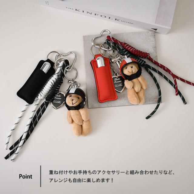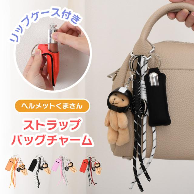 新作 リップケース付きヘルメットくまさんパラコードストラップバッグチャーム キーホルダー バッグチャーム バッグアクセサリー 紐 スマホ バッグ かわいい ぬいぐるみ セット じゃらじゃらつけ ベアー リップホルダー