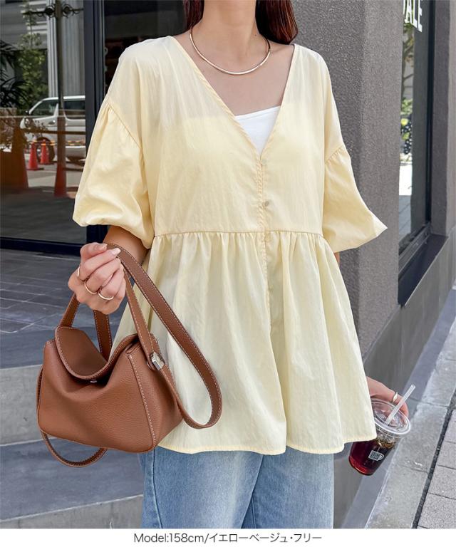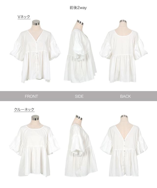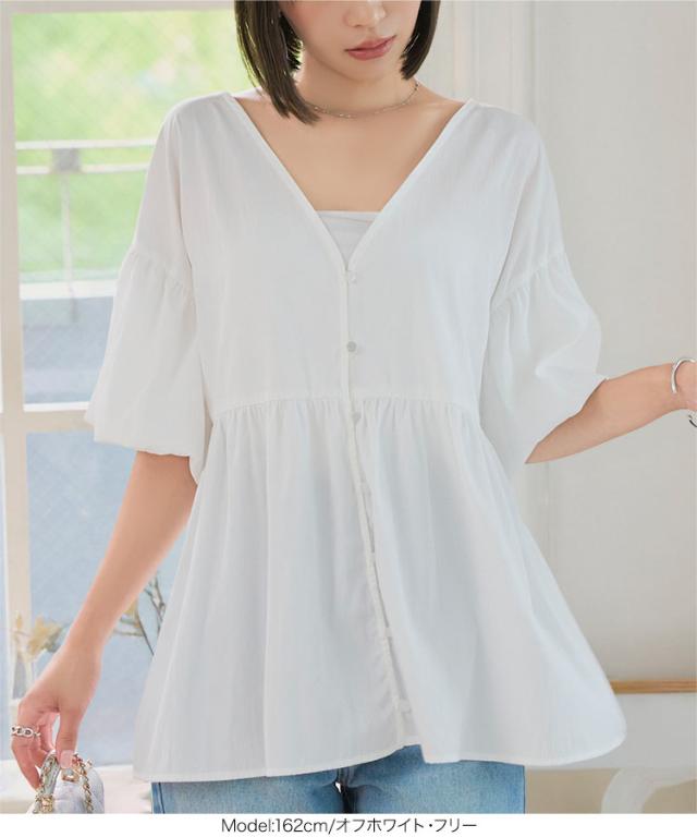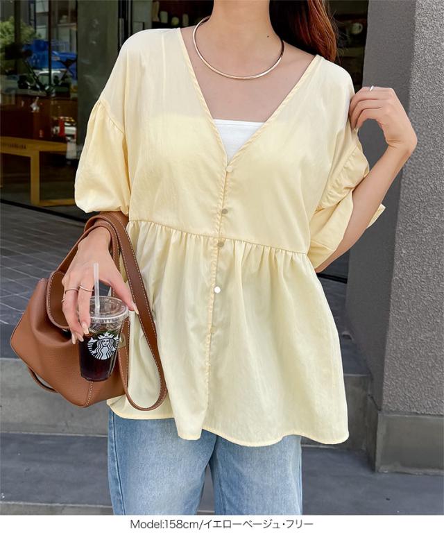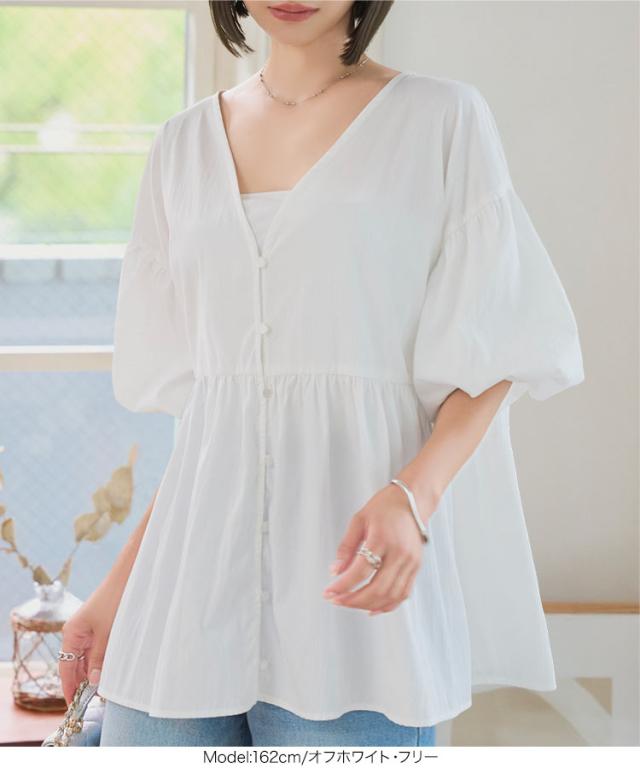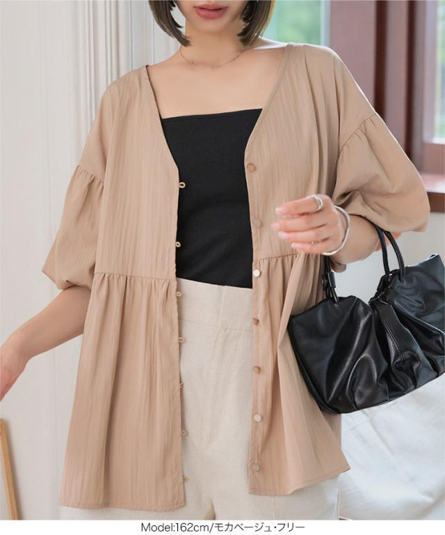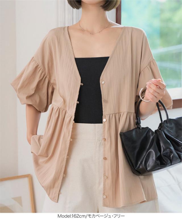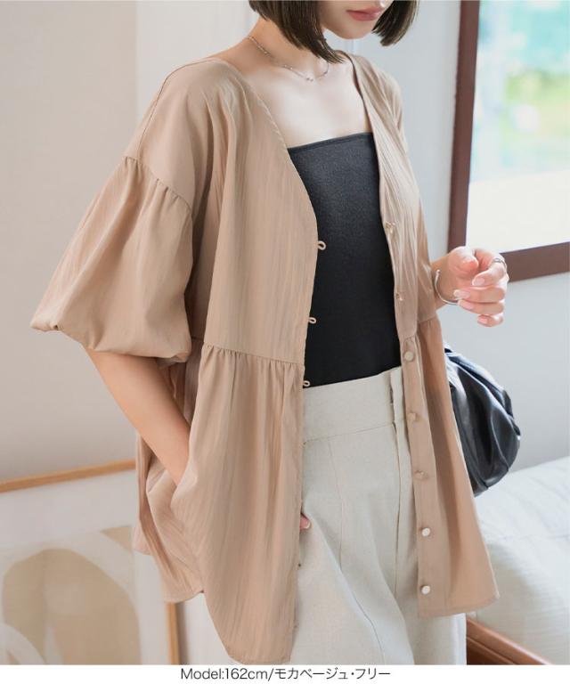2wayバルーンスリーブブラウス C7604 入荷済 レディース 20代 30代 40代 チュニック 羽織り 軽アウター 軽い 軽量 バルーン袖 2way 前開き 前空き 前あき バルーンスリーブ トップス ブラウス チュニック Vネック クルーネック