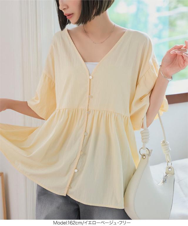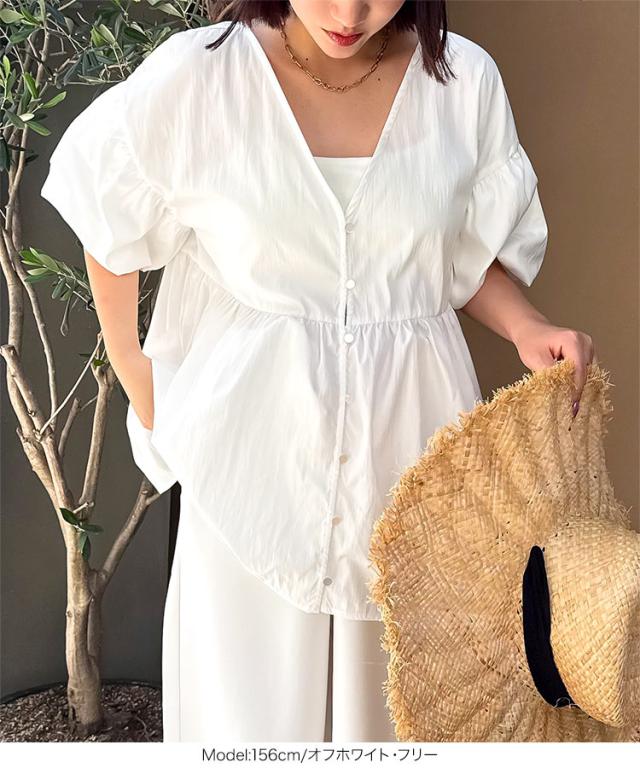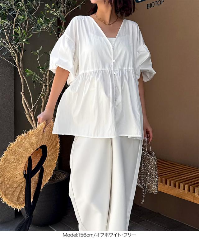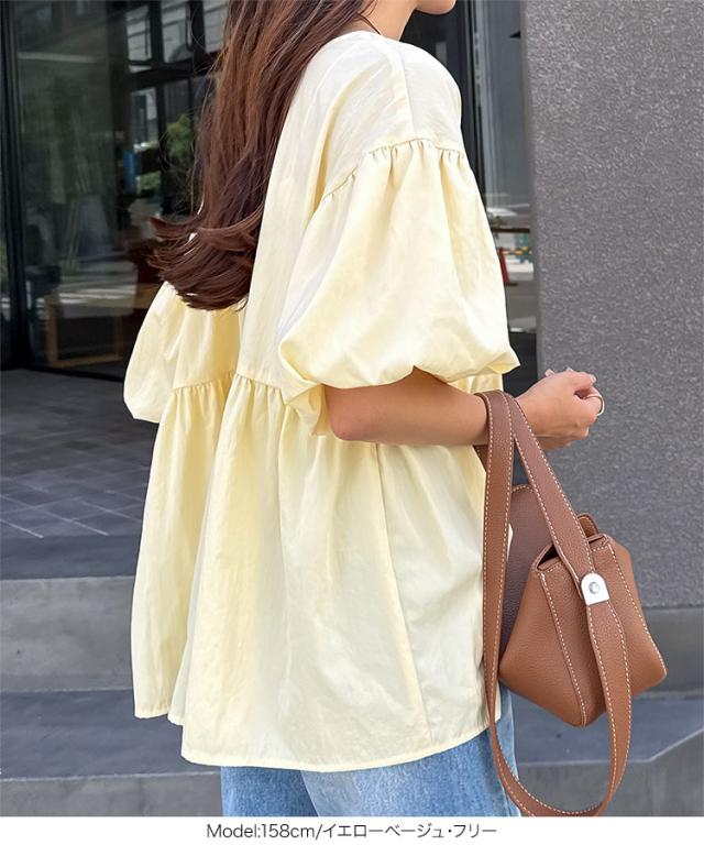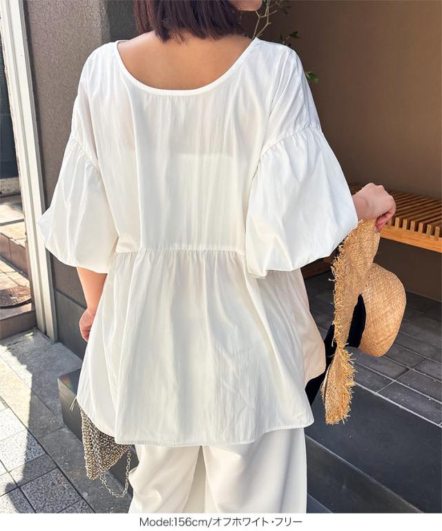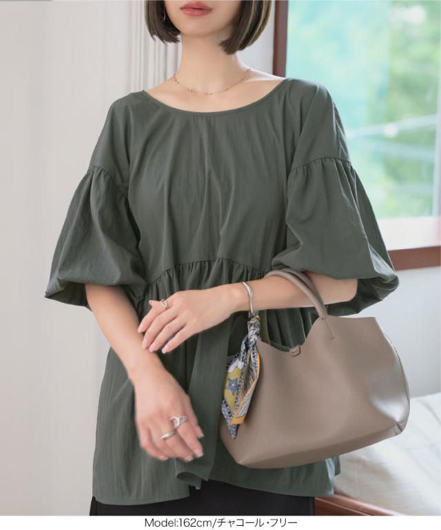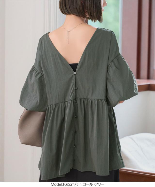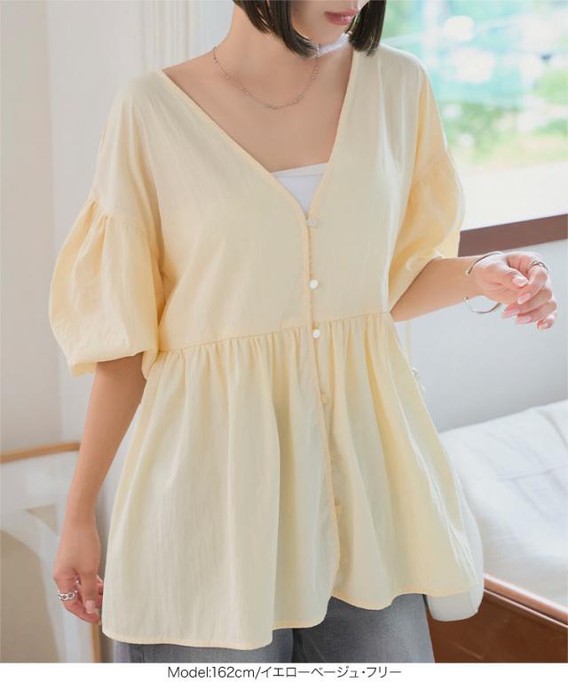 2wayバルーンスリーブブラウス C7604 入荷済 レディース 20代 30代 40代 チュニック 羽織り 軽アウター 軽い 軽量 バルーン袖 2way 前開き 前空き 前あき バルーンスリーブ トップス ブラウス チュニック Vネック クルーネック