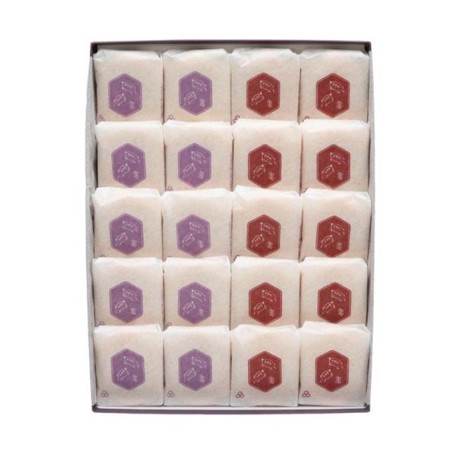北海道産小豆を丹念に炊き上げた程よい甘さの餡を、国産もち米を使用した最中種で包んだ、亀甲型の一口サイズの最中です。