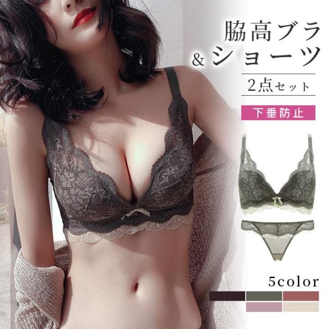 脇高でしっかり補正 谷間 やわらかノンワイヤーブラ 美胸 美背 脇高 フルレース 総レース 谷間 盛り 盛れる ブラジャー ショーツ ブラショーツ セット ランジェリー インナー 美盛 下着