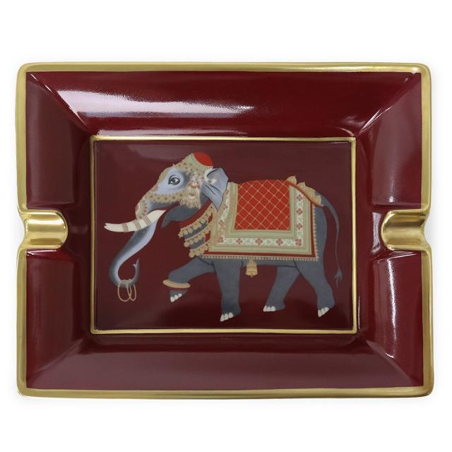 (美品)エルメス HERMES エレファント 象 アッシュトレイ 灰皿 ポーセリン ボルドー ワインレッド 赤