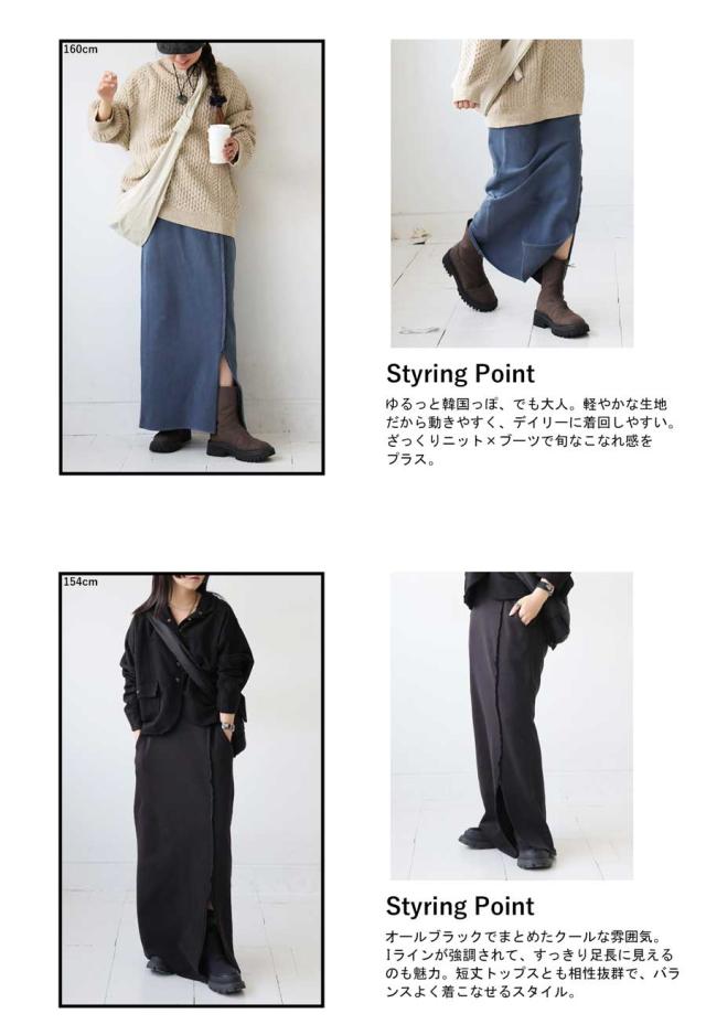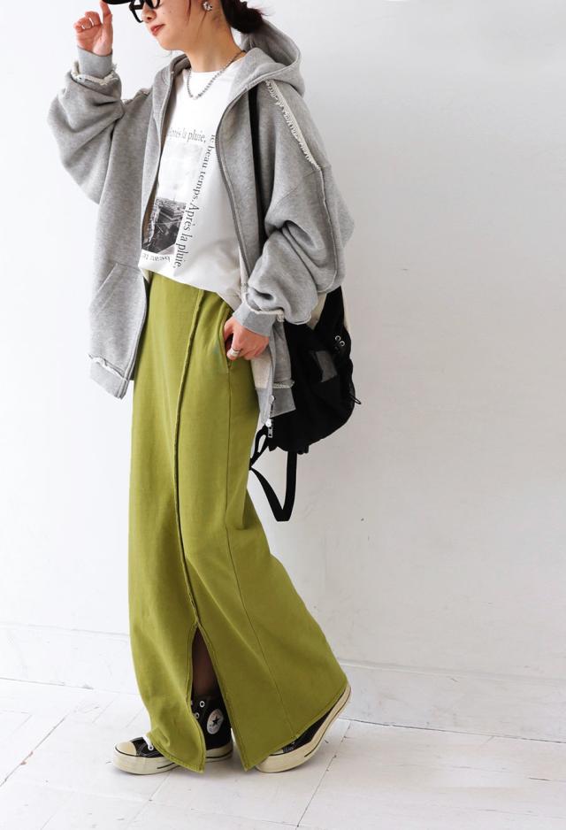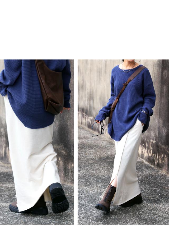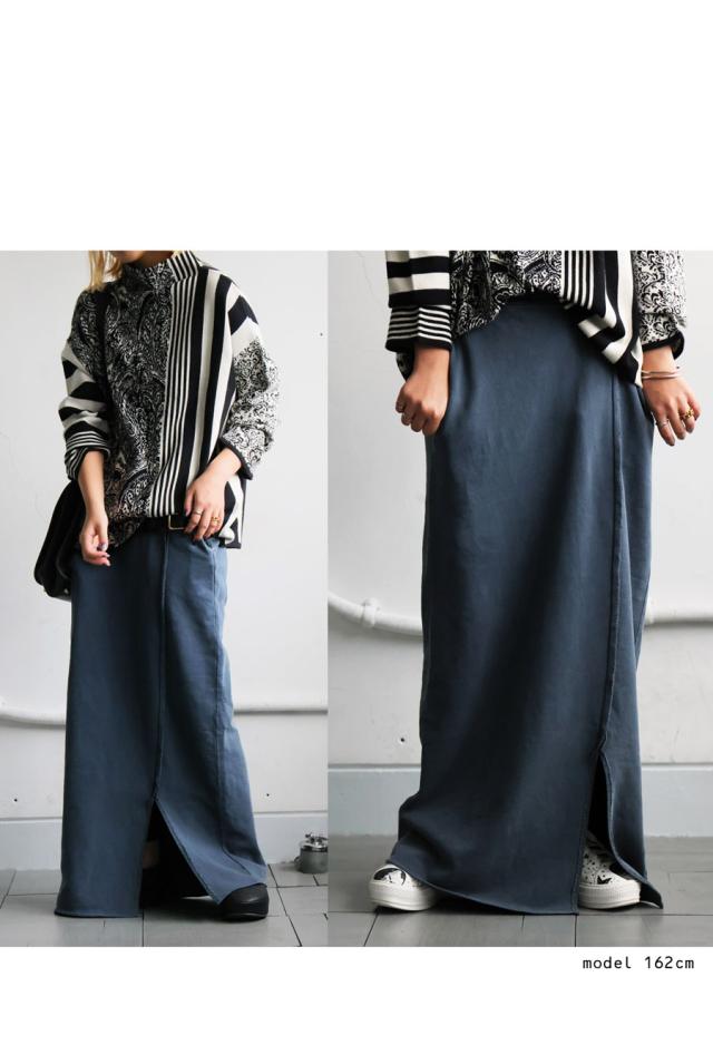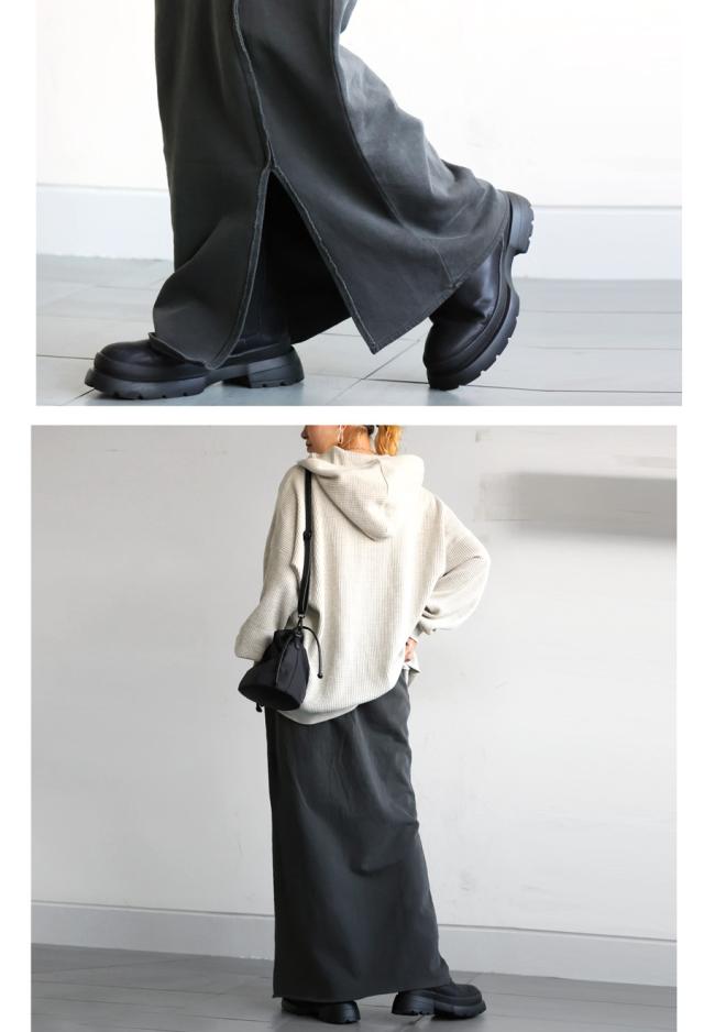 スウェットスカートならではのラフな快適さと、大人カジュアルに映える表情豊かな加工感が魅力の一着です。