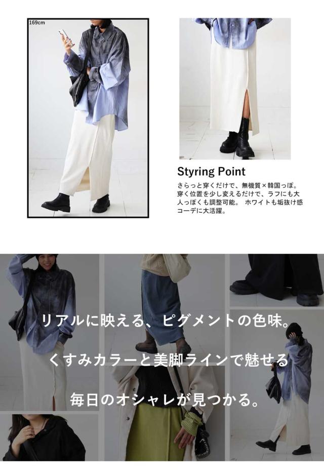 ストレートシルエットが美脚シルエットを自然に演出し、縦ラインを強調することで体型カバー効果も抜群。