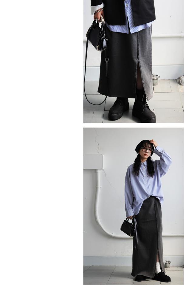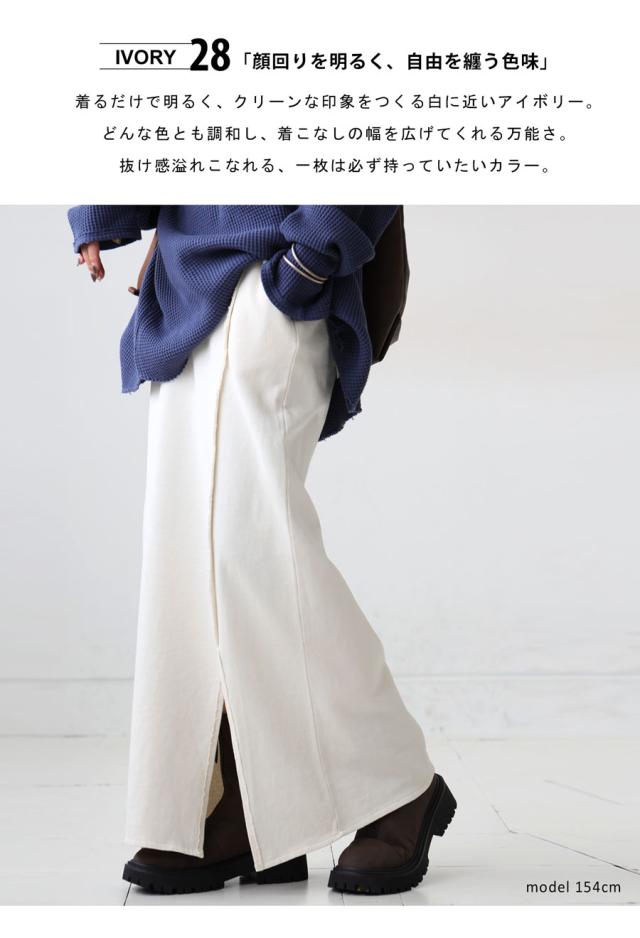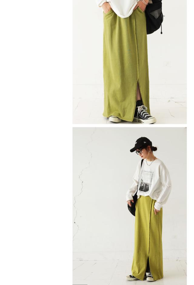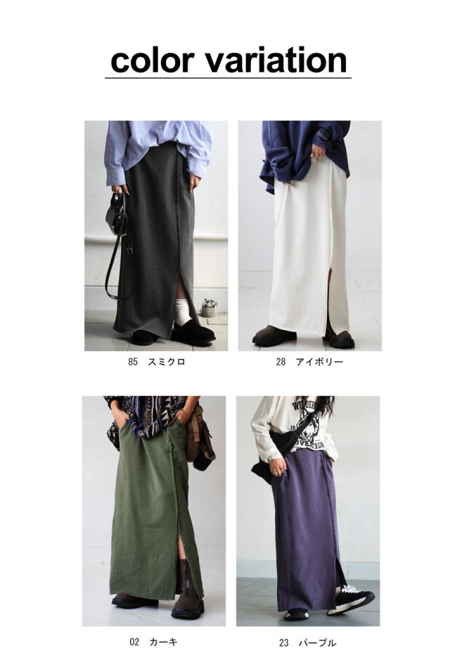 na-00512 ボトムス ロングスカート ストレート ウエストゴム 美脚 体型カバー ゆったり ワンマイル シンプル 普段着 綿100% コットン ヴィンテージ風 古着風 スリット カジュアル