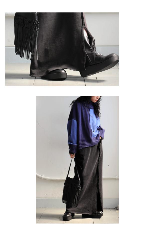フロントには斜めスリットが入り、動きやすさと抜け感を両立したリラックスデザイン。