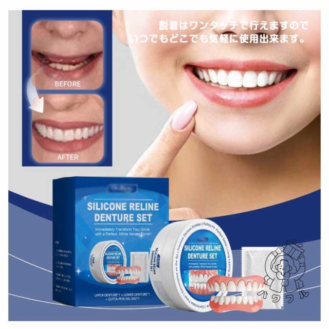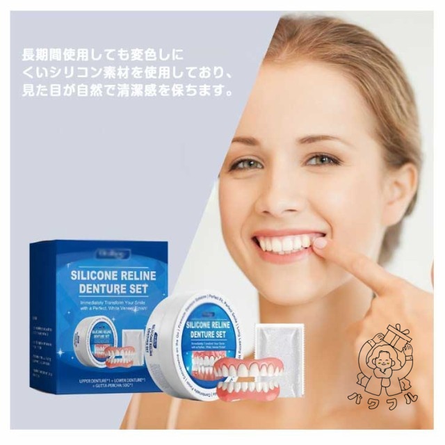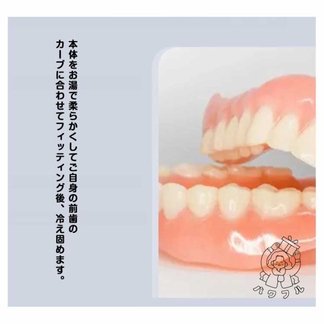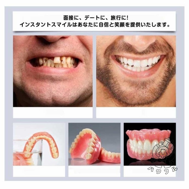 - 新登場の商品ですが、装着がとても簡単で、見た目も自然です。シリコン素材で痛みや違和感も少なく、黄ばみも目立ちません。上下セットで男女兼用なので便利。すきっ歯や欠け歯の補正にも役立ち、再利用できるのも嬉...