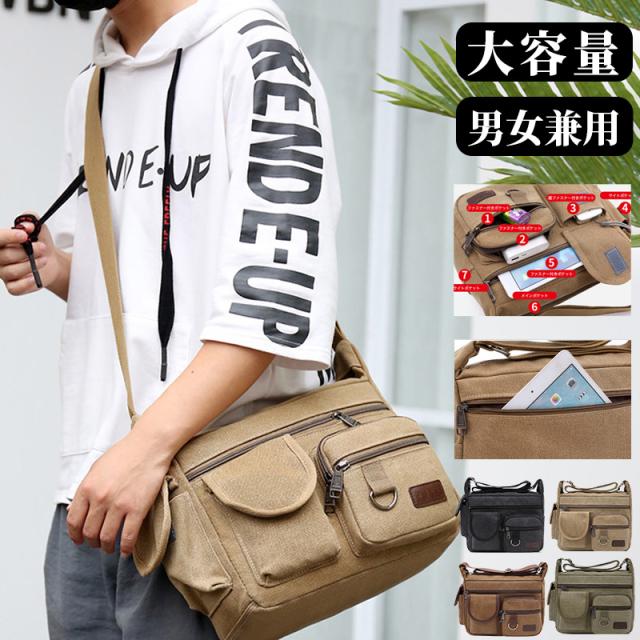 ショルダーバッグ メンズ 30代 メンズバック 40代 メンズバック 50代 ショルダーバッグ メンズ 60代 ファスナー付き ポケット キャンバス素材 大容量 ファスナー付きポケット フロントポケット 小物入れ 便利 ストラップ調整可 ブランド メンズ シンプル かっこいい おしゃれ 軽い コンパクト 便利 爆買