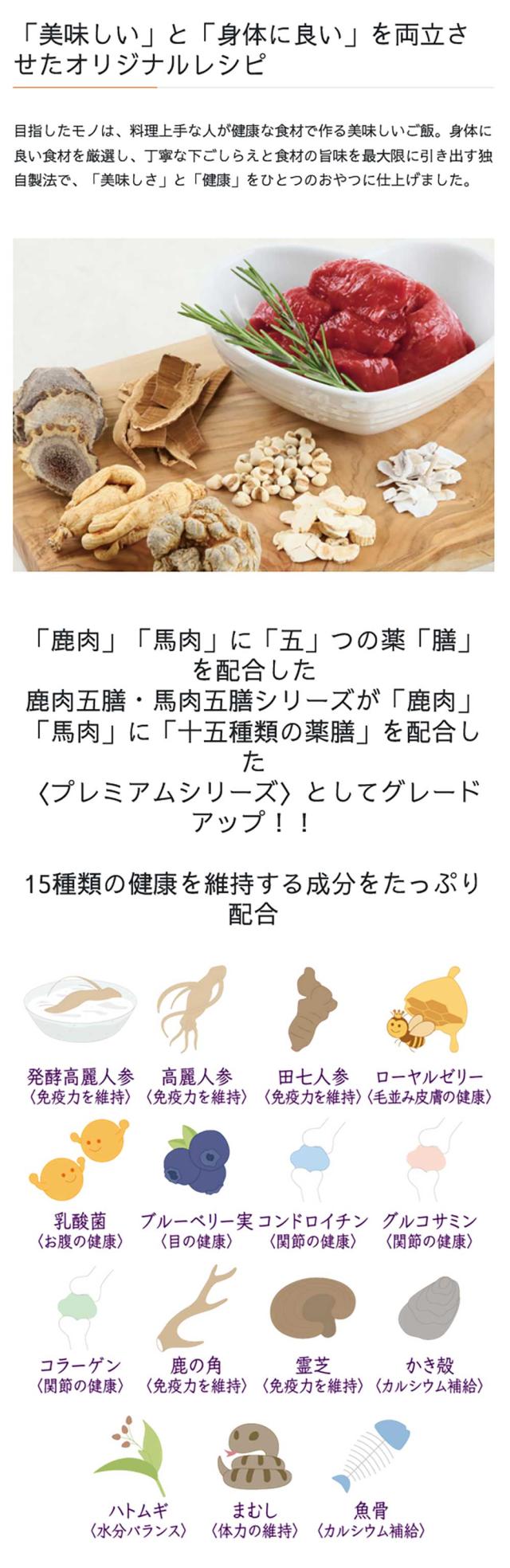 鹿肉に高麗人参・ローヤルゼリーなど15種の高級薬膳を配合