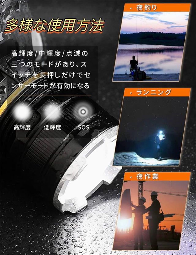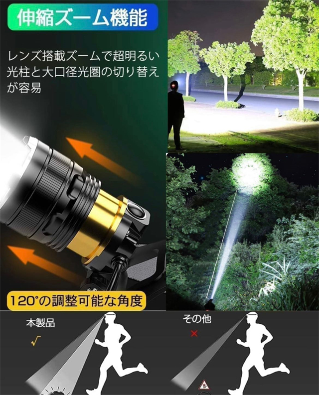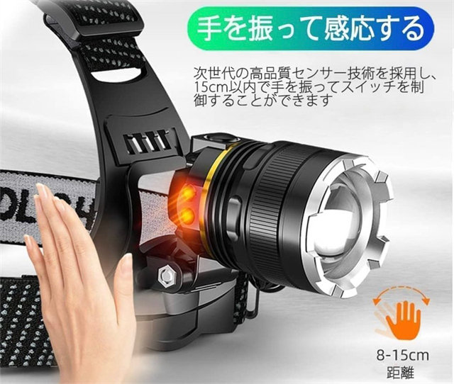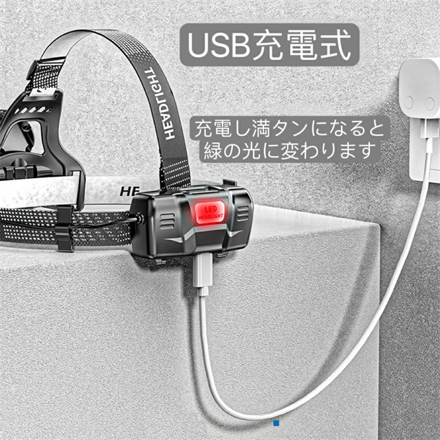 ヘッドライト 充電式 LED 角度調整可能 小型 電池式 作業用 軽量 高輝度 ライト usb 長時間点灯 夜間 明るい センサー点灯 防水 防塵 防災 停電 アウトドア キャンプ ランニング