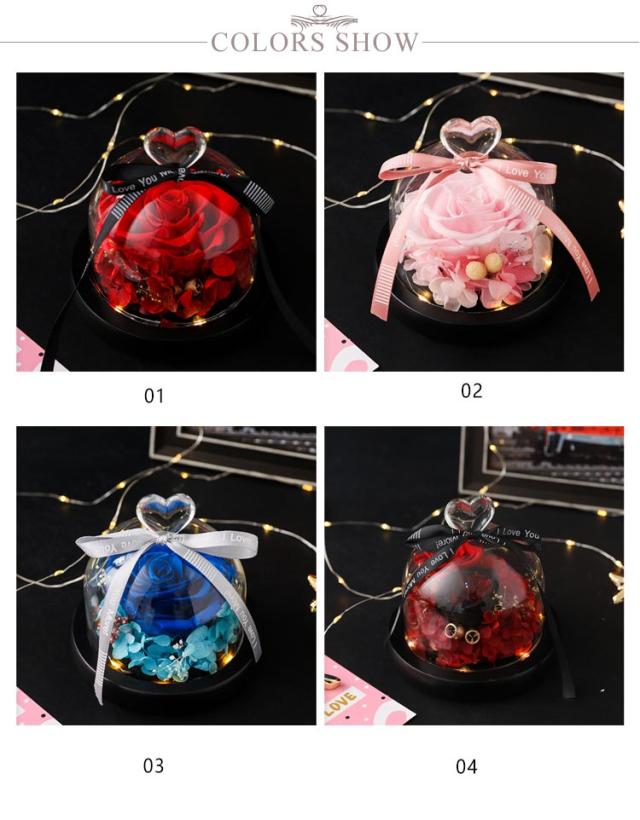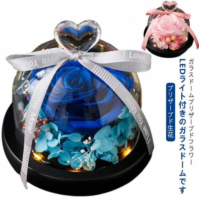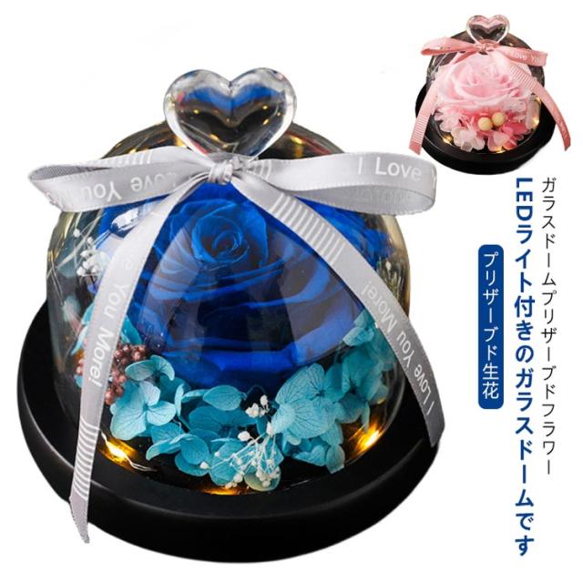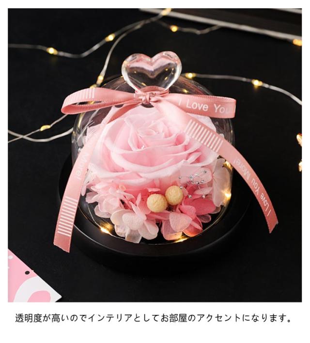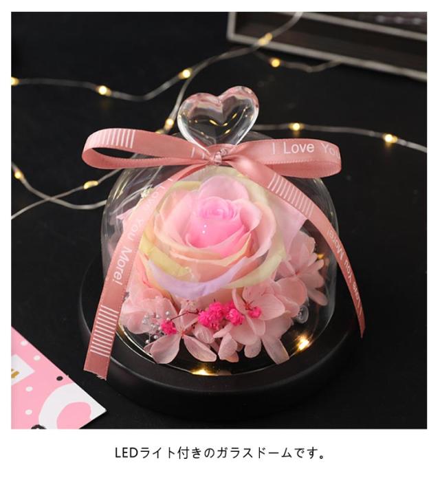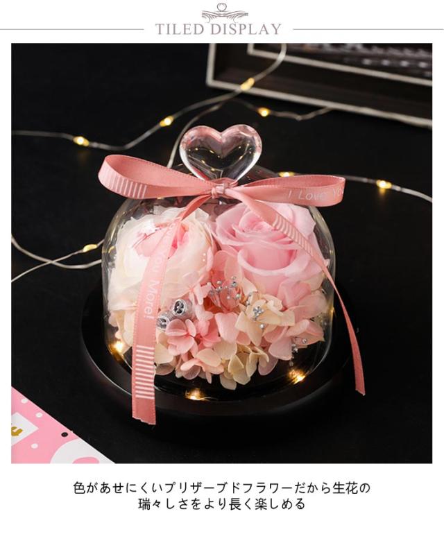 プリザーブドフラワー ガラスドーム付き ライト付き 電池式 誕生日 退職祝い ホワイトデー お返し プレゼント ギフト プリザーブド生花 ローズ バラ フラワー 結婚記念日 還暦祝い 贈り物 人気 女性 男性 退職 お祝い 母の日