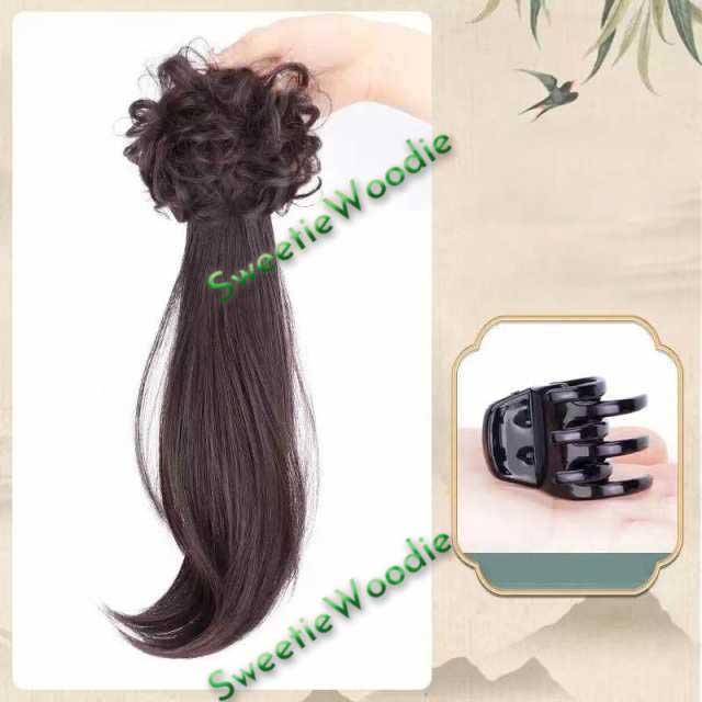 ウィッグ ポニーテール レディース ロング 女性 ワンタッチ お団子 自然 部分 つけ毛 自然 和装 2タイプ ヘアアクセサリー 髪飾り