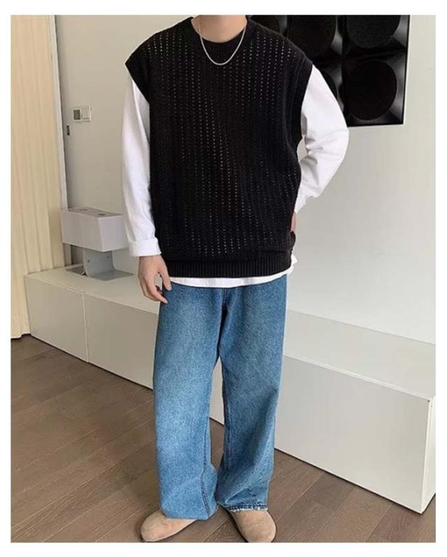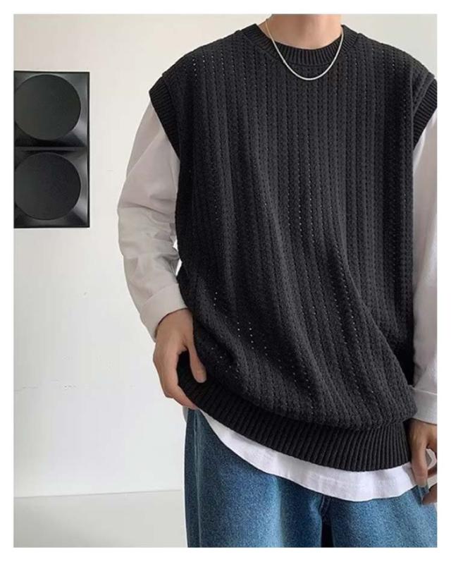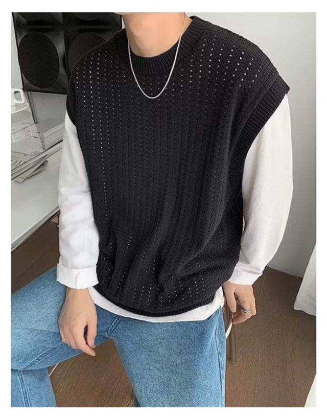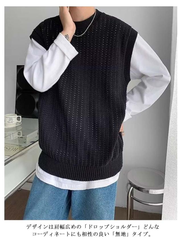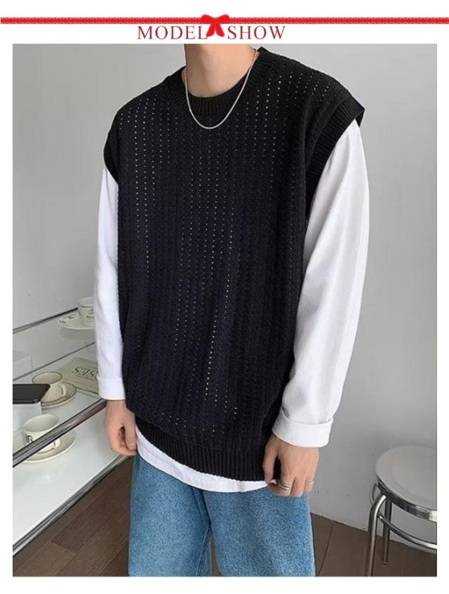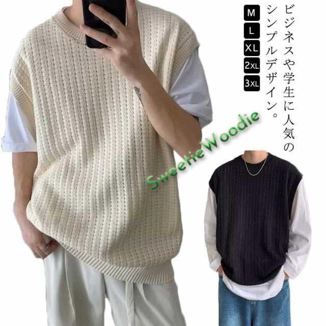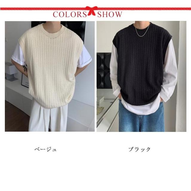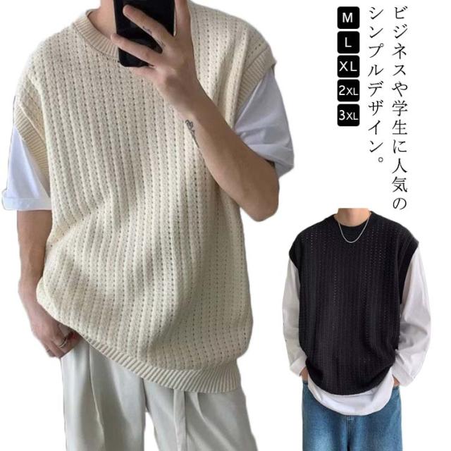 ニット ベスト メンズ 春夏 学生 サマーニットベスト メンズ 大きい 韓国 おしゃれ クルーネック ゴルフ ベスト プルオーバー 透かし編み ニット きれいめ カジュアル ブラック ベージュ 黒 夏服 秋 秋冬 秋服 父の日